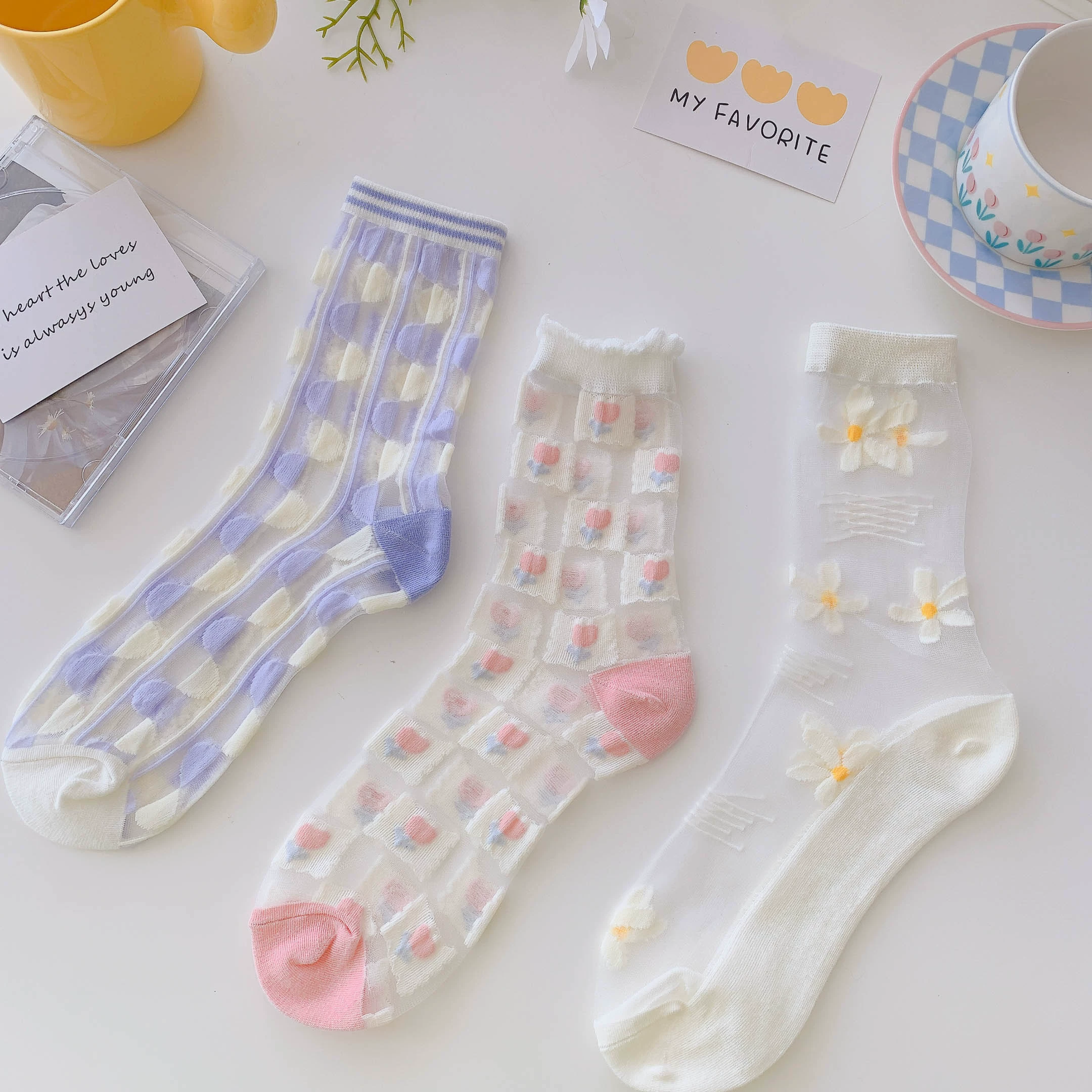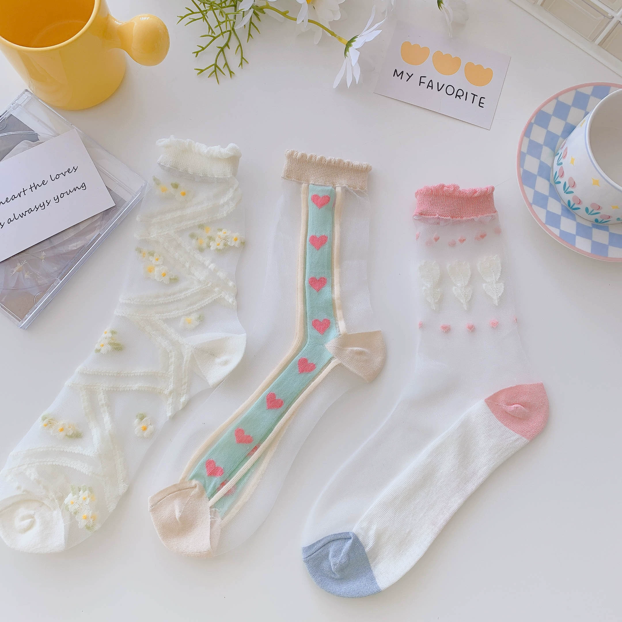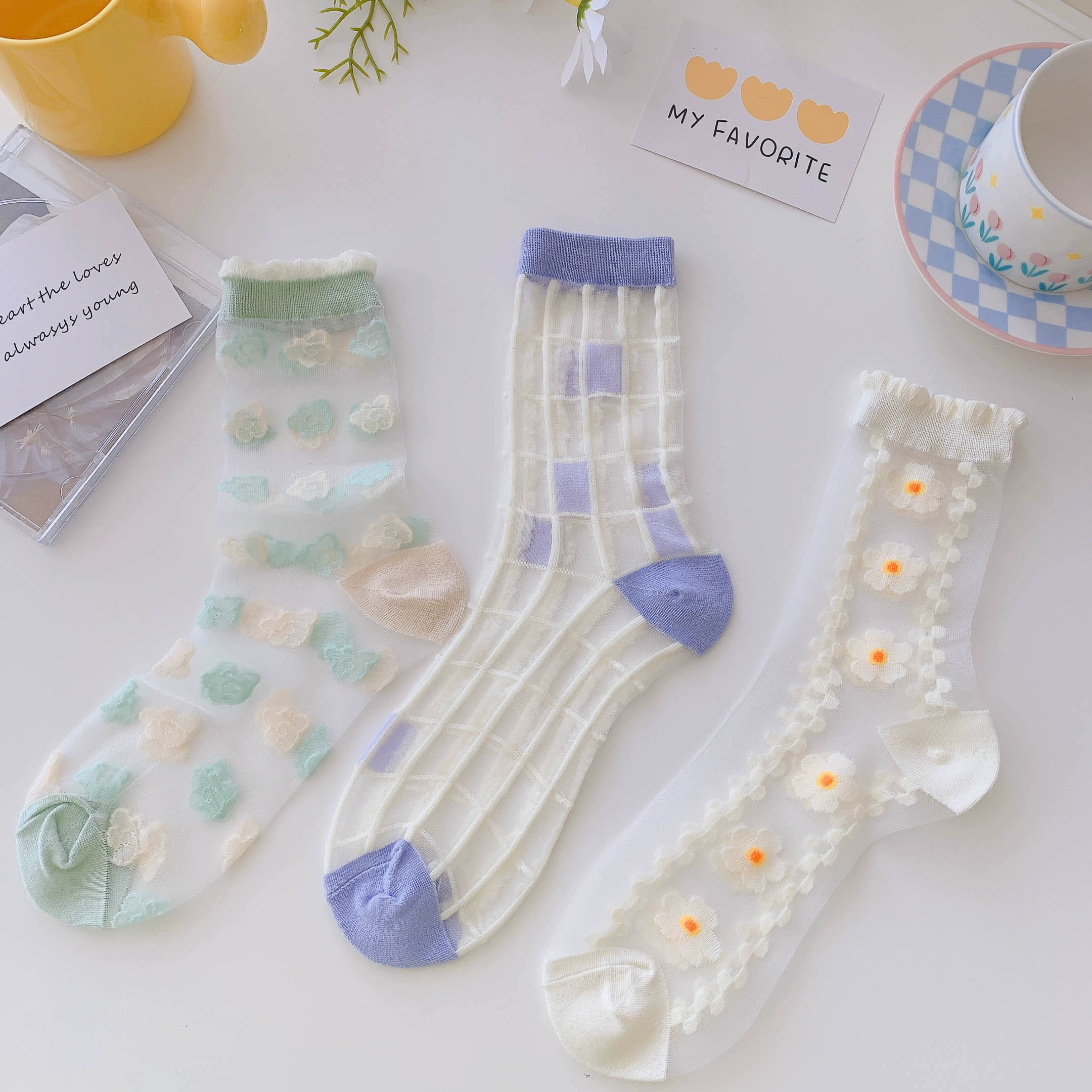 Socks women's crystal clear glass sandals summer socks