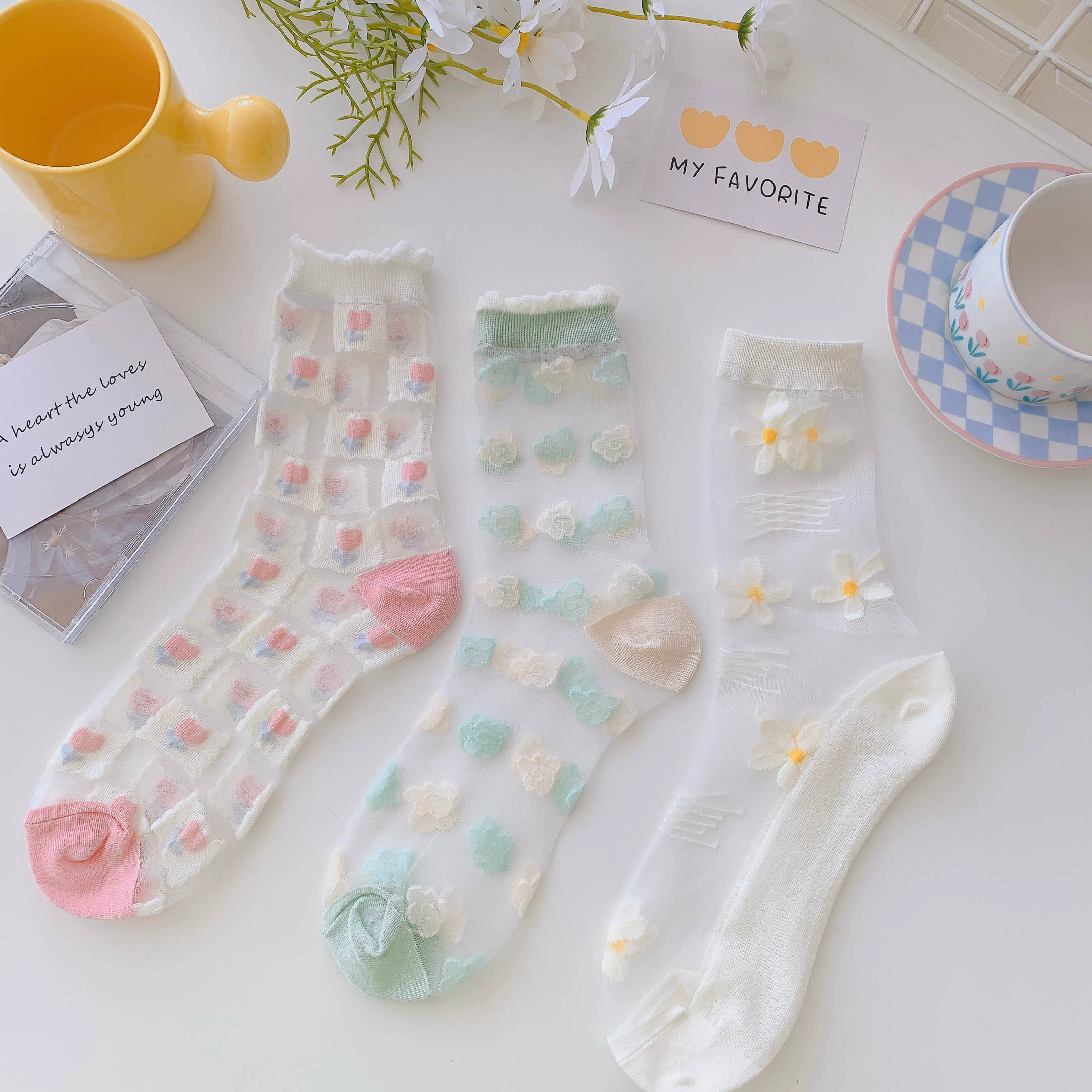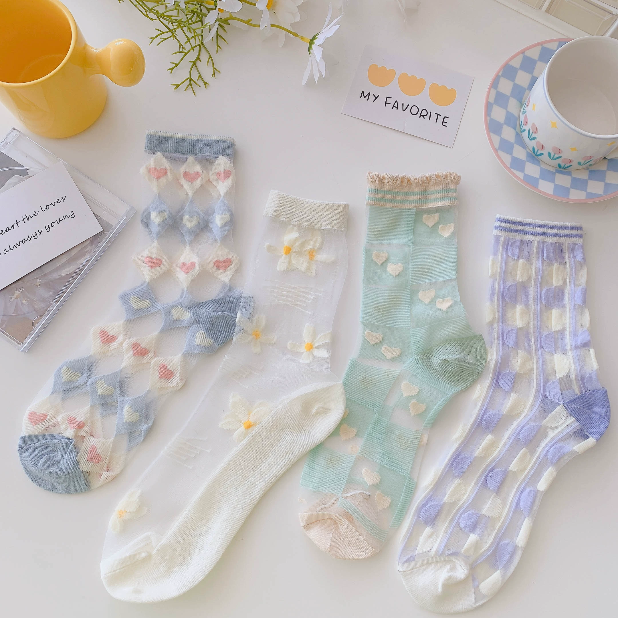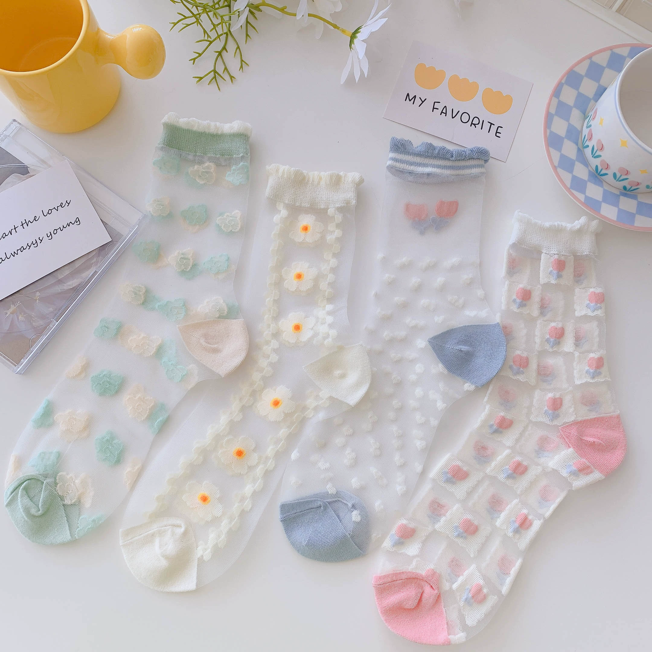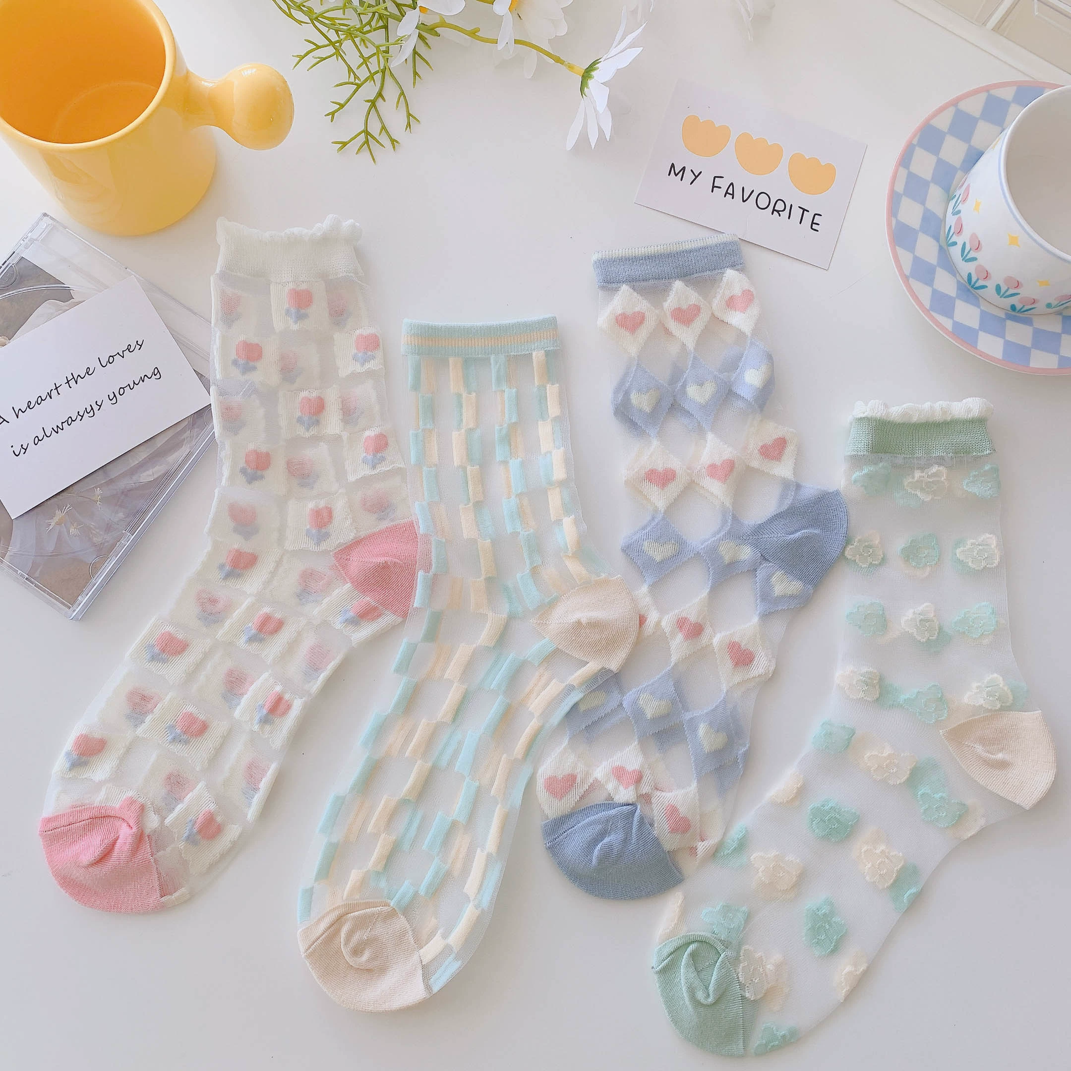 Socks women's crystal clear glass sandals summer socks