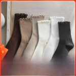 Socks Women’s Mid-length socks spring and autumn wooden ear lace socks ins Japanese style versatile pile socks autumn and winter jk women’s socks