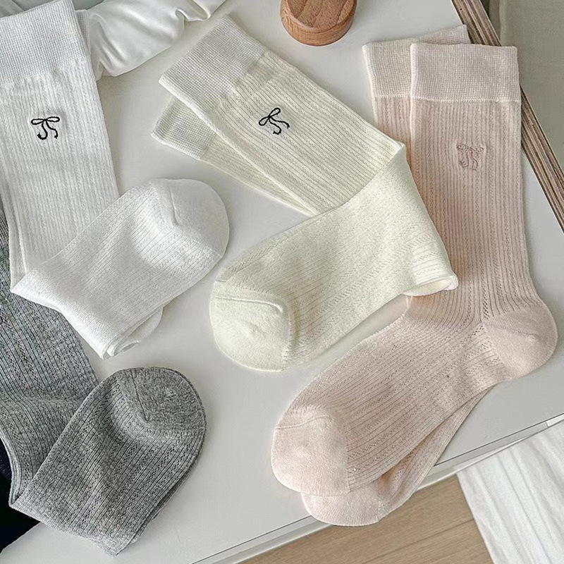 Socks Women's Mid-tube Socks Summer Embroidered Bow Solid Color Women's Stack Socks Breathable Thin Summer Ice Silk Stockings