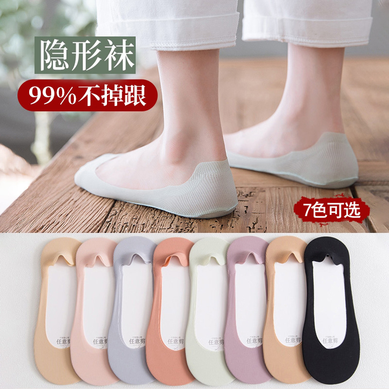 Socks Women's Short Socks Summer Thin Ice Silk Invisible Socks Sweat Absorbing Breathable Women's Socks Solid Color Shallow Short Tube Cotton Socks Summer