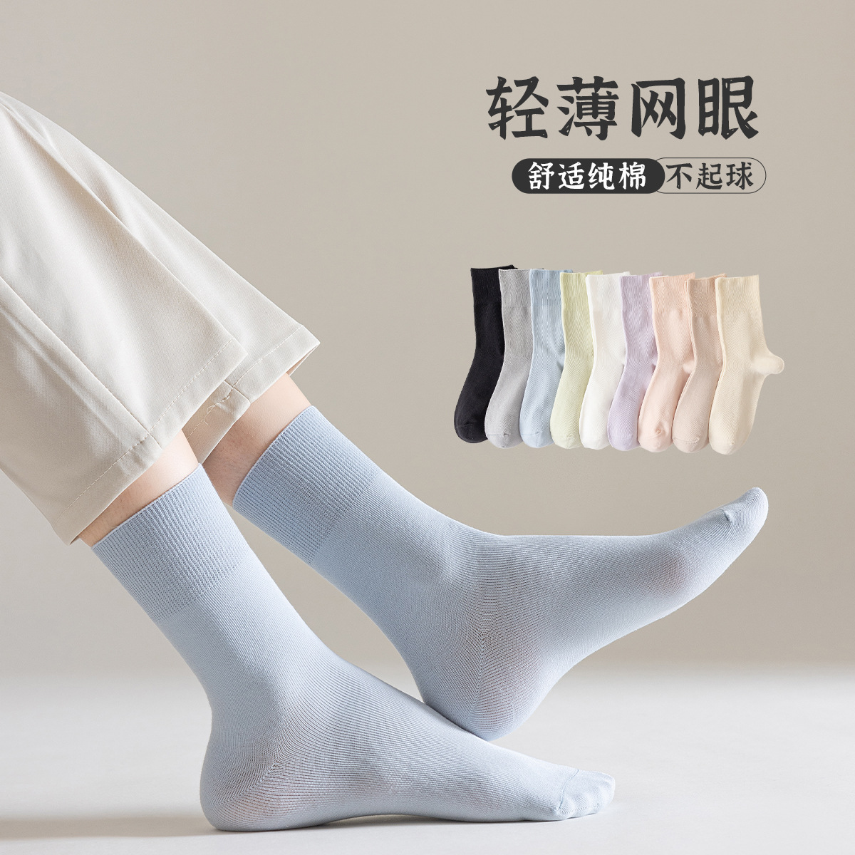 | nameOriginal | Socks women's spring and summer cotton tube socks Japanese simple thin boneless socks solid color soft loose moon socks wholesale |