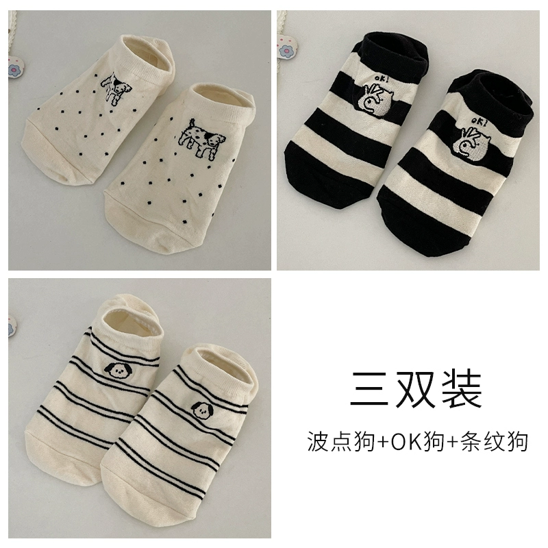 Socks for women pure cotton non-slip stripes summer low-top socks