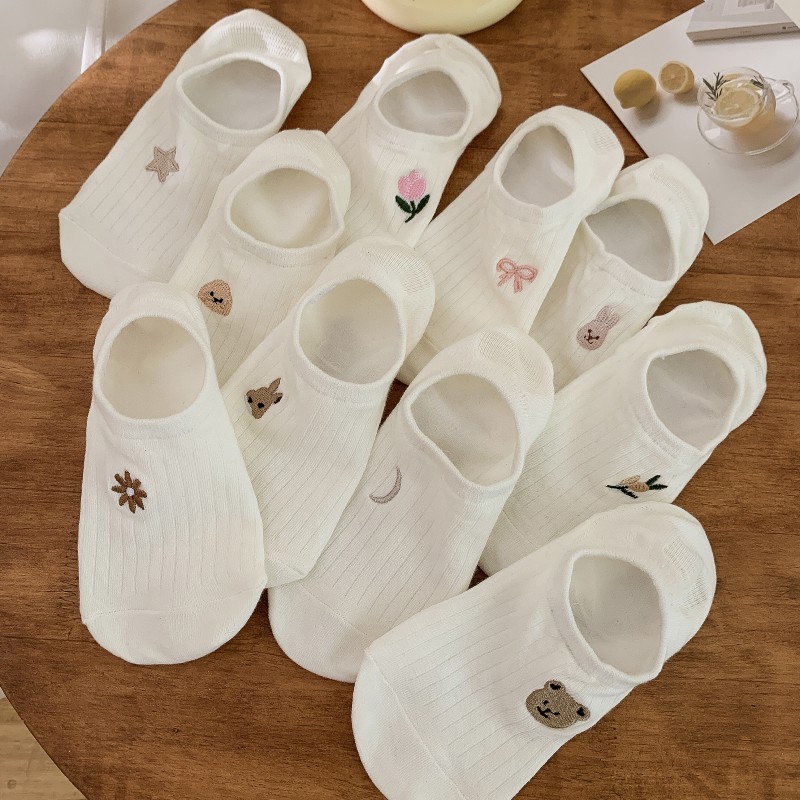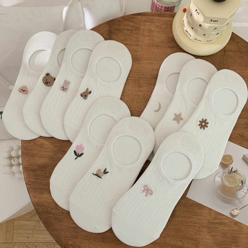 | nameOriginal | Socks women's summer thin boat socks don't fall off with women's white invisible socks embroidered bow cartoon high heels socks |