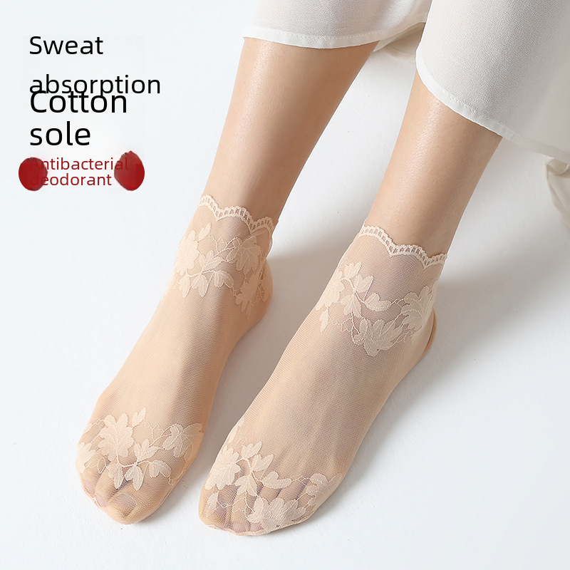 | nameOriginal | Socks Women's Summer Thin Lace Lace Socks Cotton Bottom Short Mid-length Boat Socks Hollow Breathable Non-slip Mesh Socks |