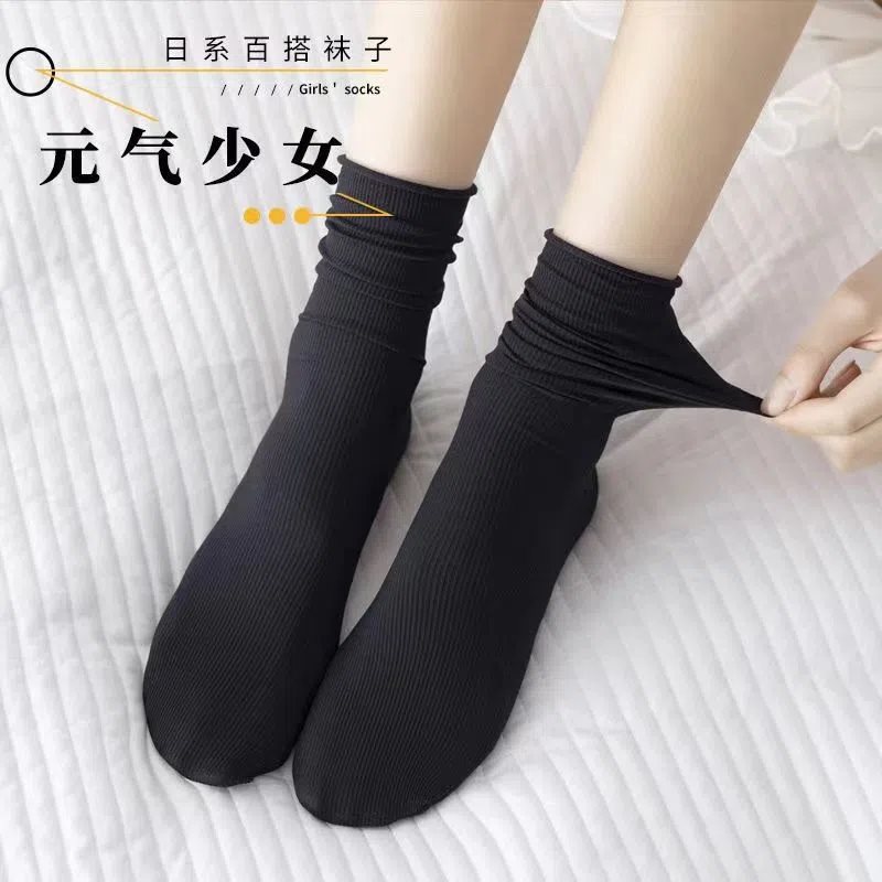 Socks women’s summer thin pile socks tide solid color velvet tube socks black ice socks ultra-thin breathable students