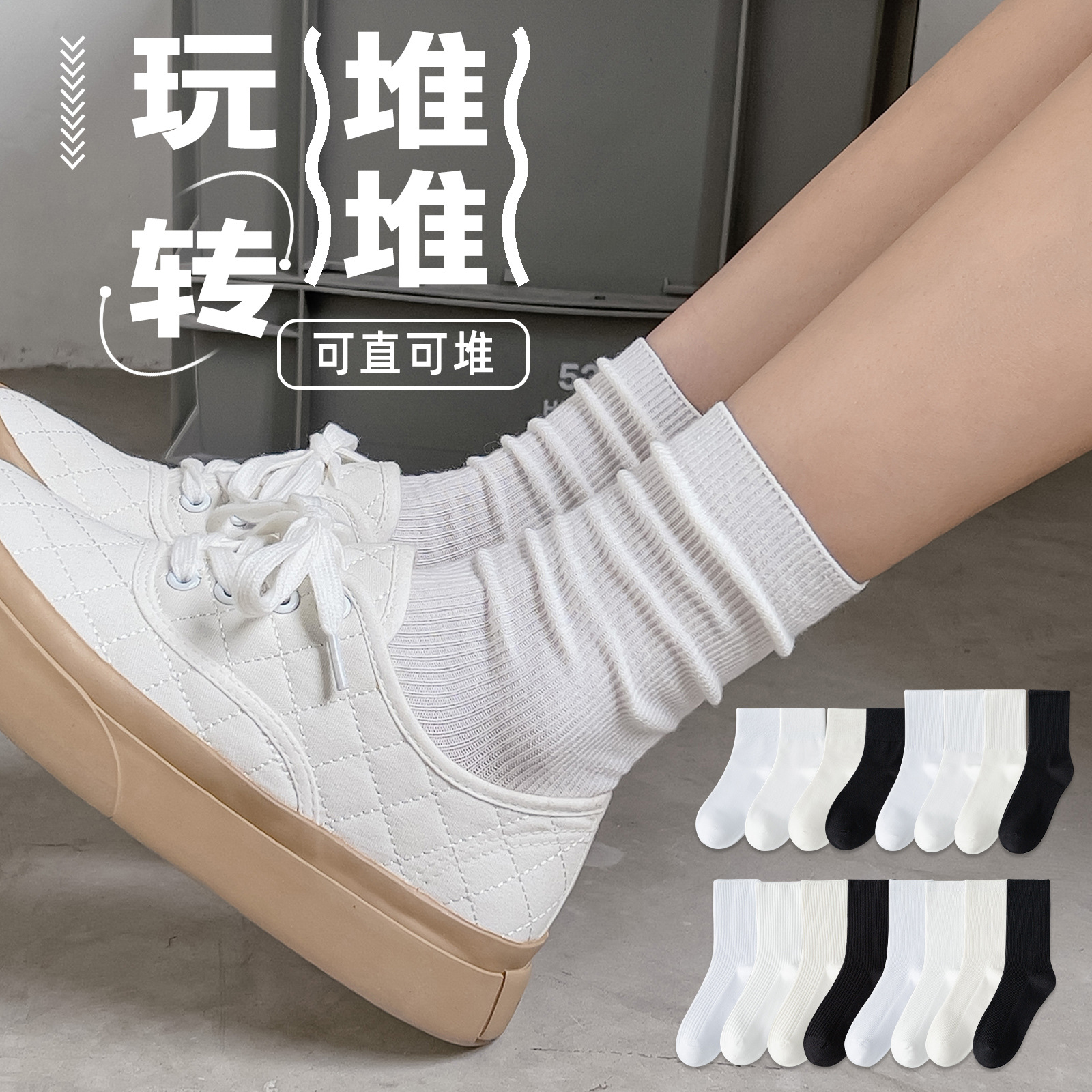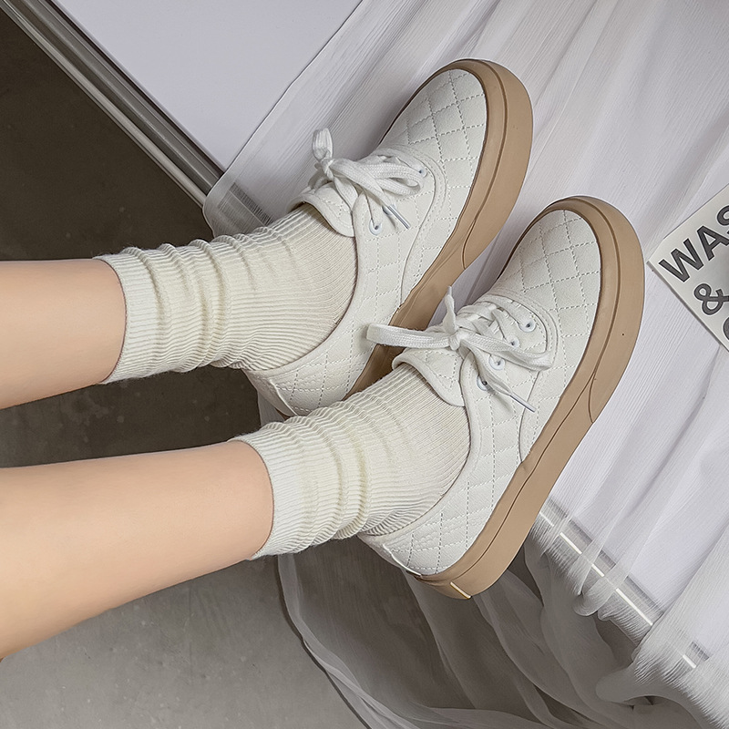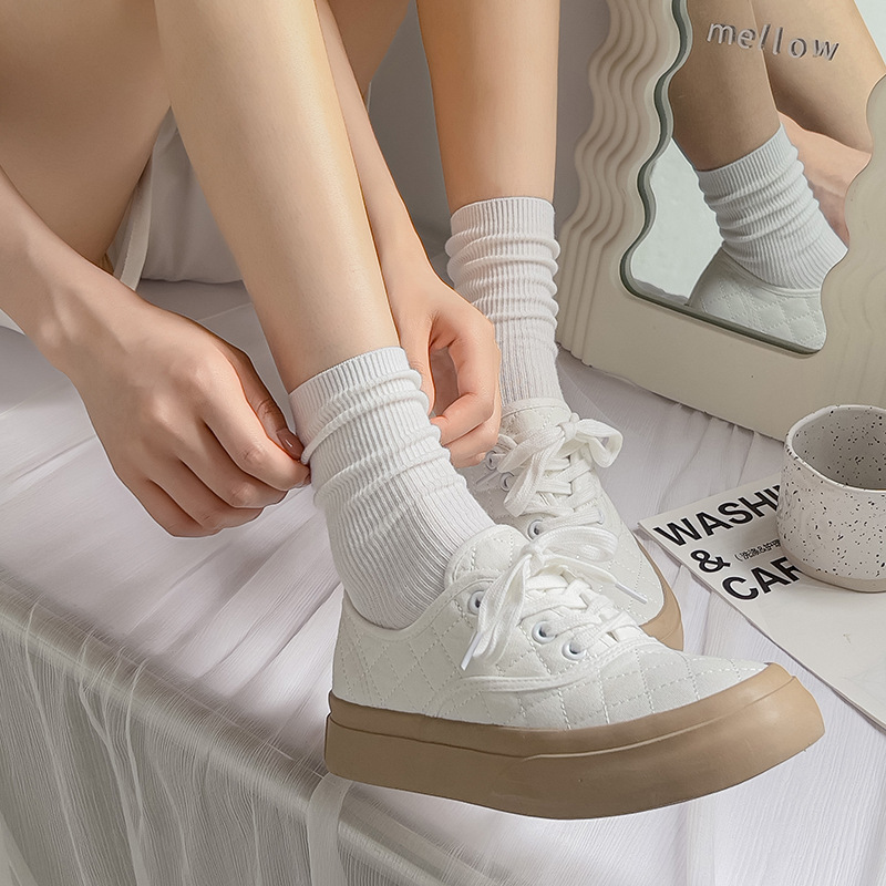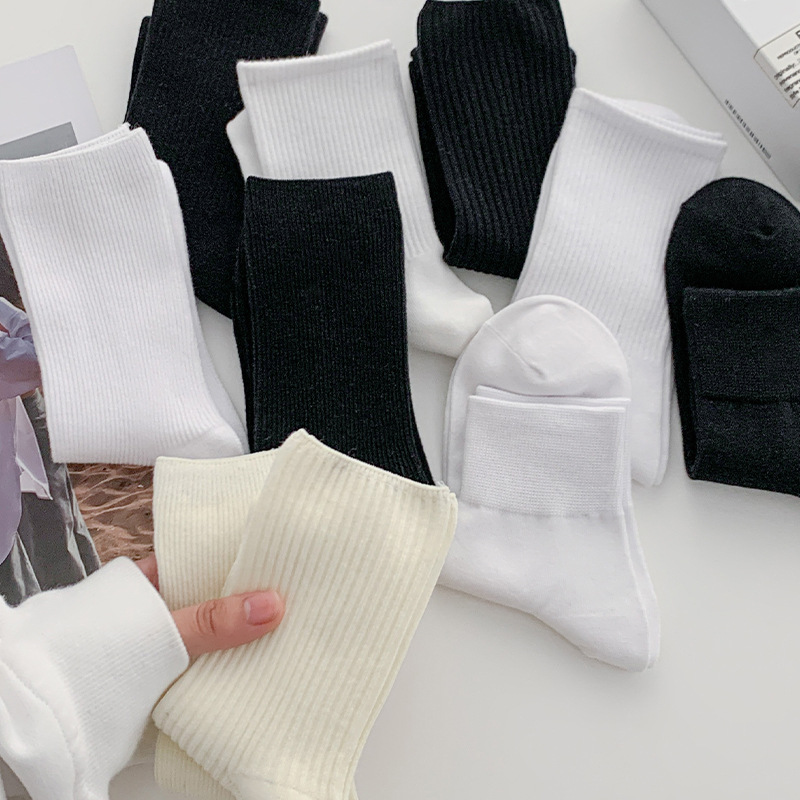 | nameOriginal | Socks women's tube solid color double needle pile socks cotton socks striped white spring and autumn new stockings Zhuji wholesale |