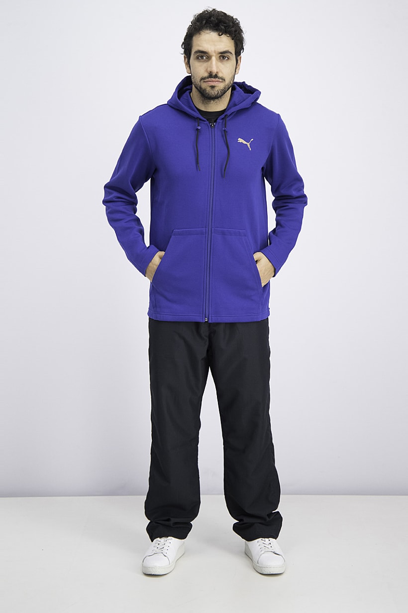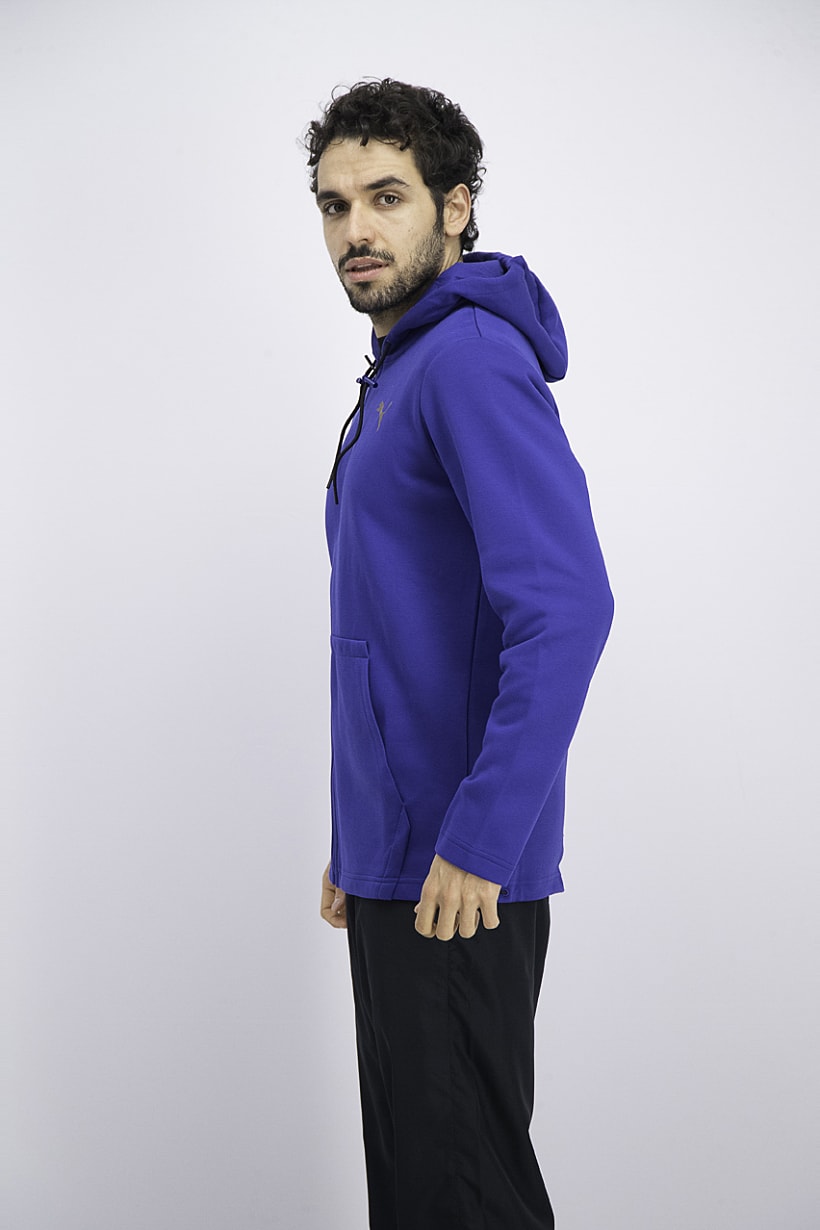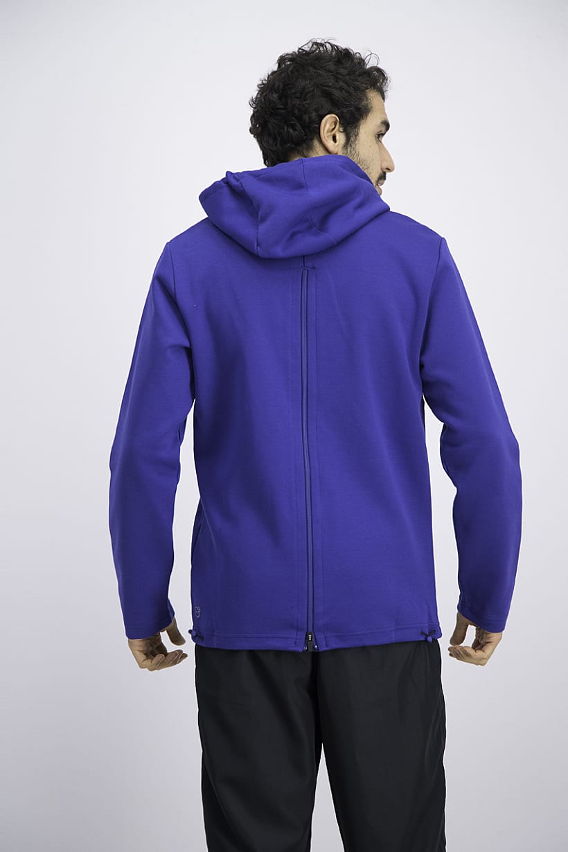 Type of Neckline & Collar : Hood, Care : Machine washable, Pattern & Print : Brand Logo, Types of Closures : Zipper closure, Fabrics : 23% Polyester, 77% Cotton, Color Family : Blue, Fit : Sportswear Fit, Size shown : US, Thickness : Light, Type of Sport : Running, Sportswear Type : Sweatshirts, Occasion : Sport,