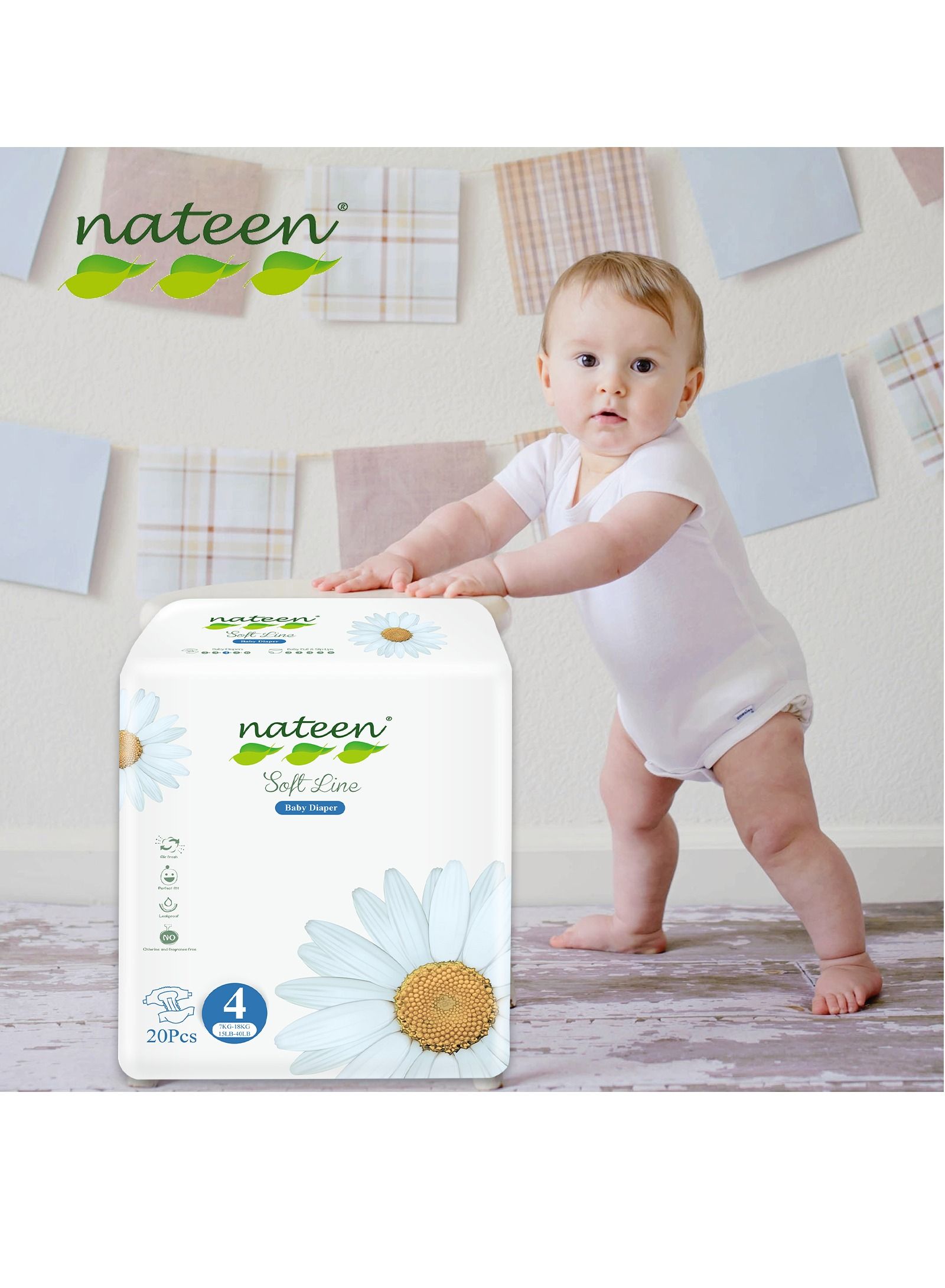 Nateen Soft Line Baby Diapers,Size 4(7-18kg),20 Count Diapers,Super Soft,Breathable Baby Diaper.