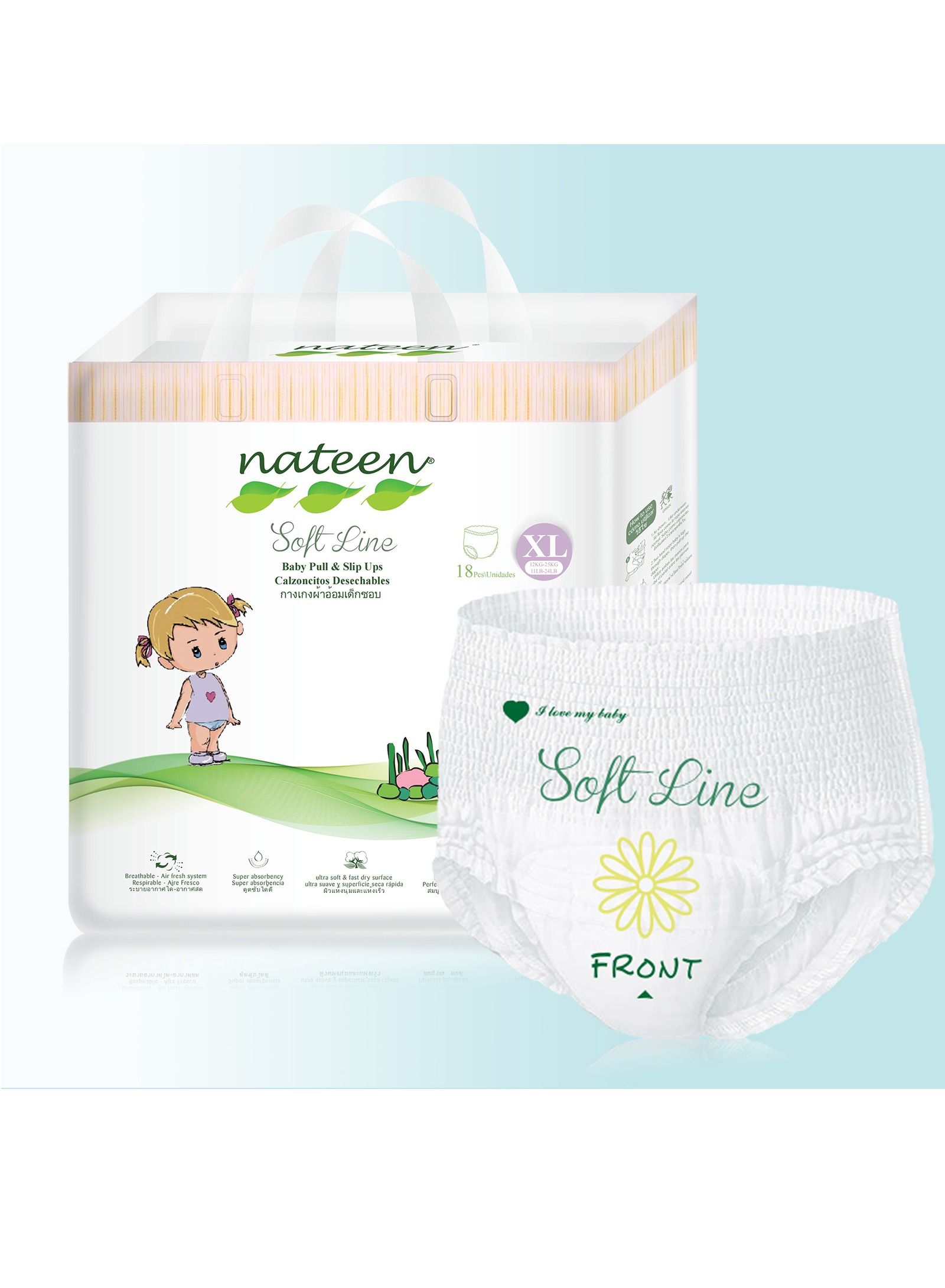 Nateen Soft Line Baby Pants Diapers ,Size 5 (12-17kg), X-Large Baby Pull Ups,18 Count Diaper Pants,Super Soft and Breathable Baby Diapers Pants.