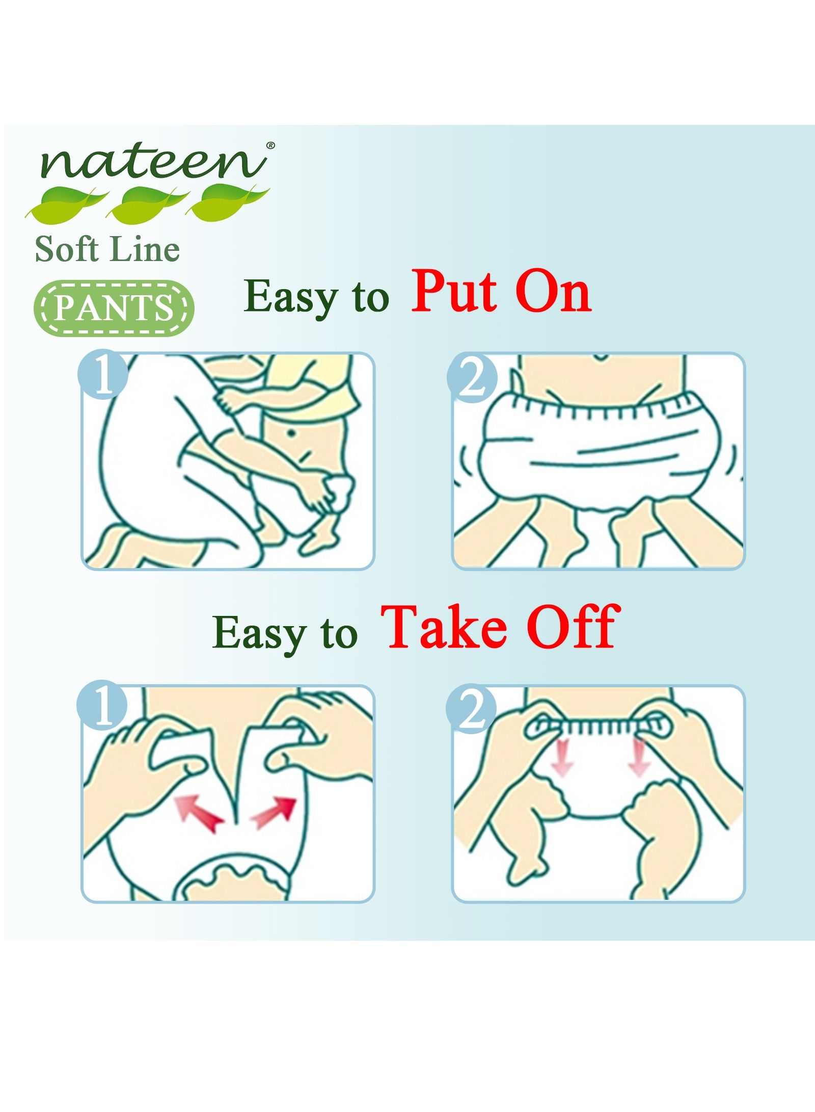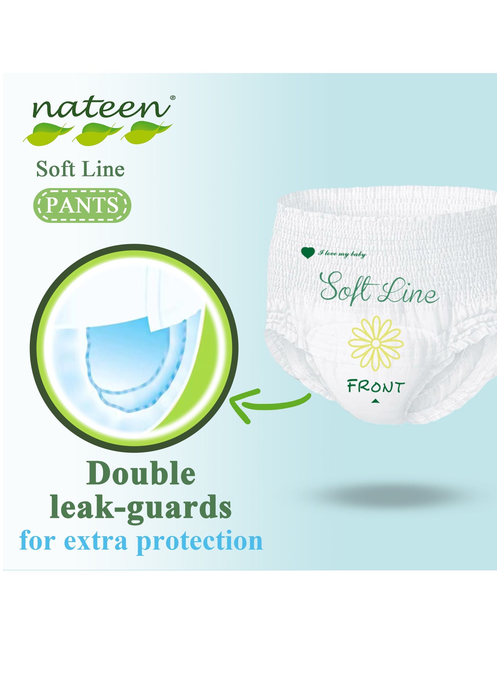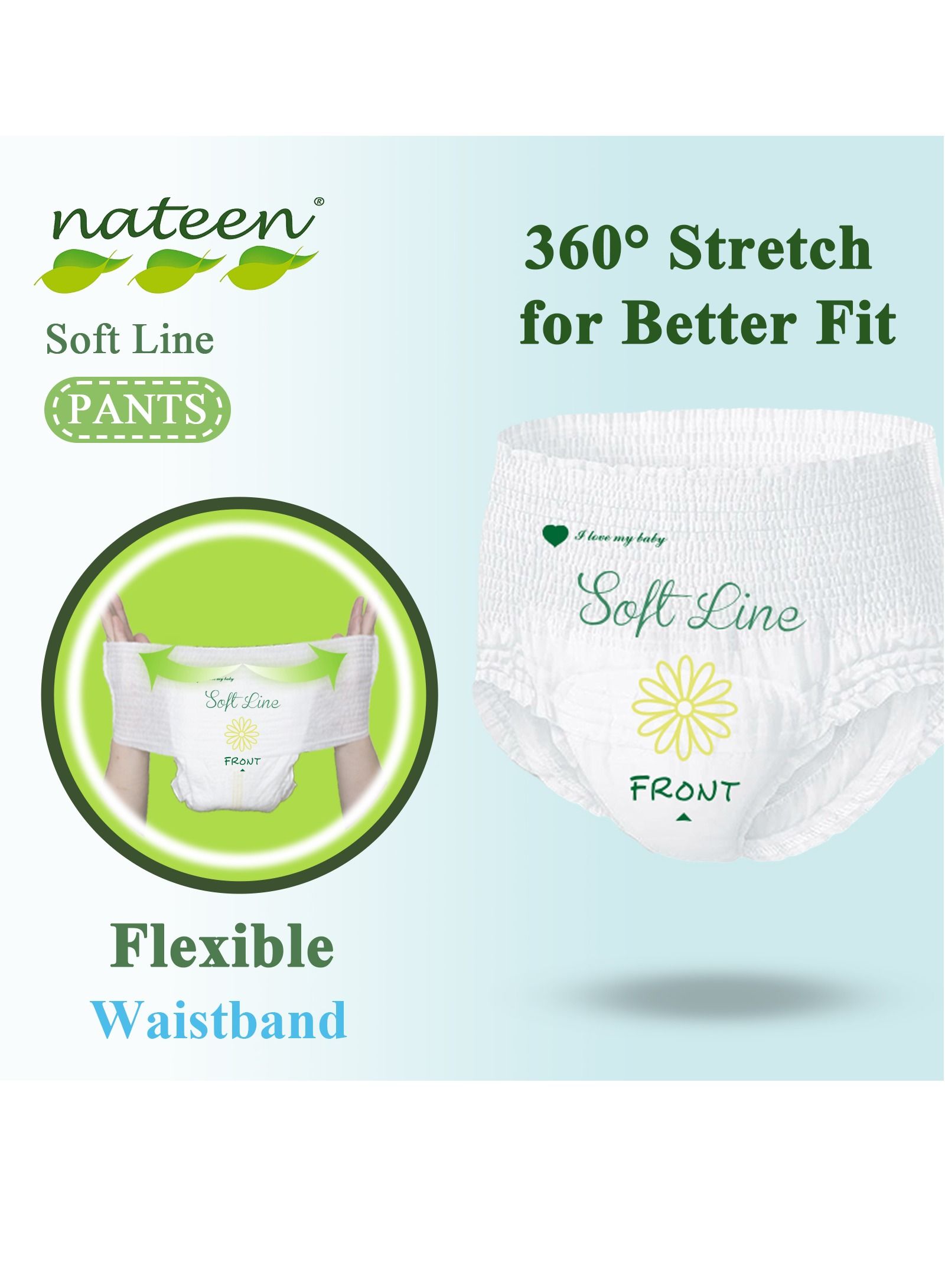 Introducing the Nateen Soft Line Baby Pants Diapers, specially designed for your little one’s comfort and convenience. These X-Large Baby Pull Ups are perfect for babies weighing between 12-17kg and come in a pack of 18 Count Diaper Pants. The super soft and breathable material of these Baby Diapers Pants ensures that your baby stays comfortable and dry all day long. The elastic waistband and leg cuffs provide a secure fit and prevent any leaks or accidents. These diapers are easy to put on and take off, making diaper changes a breeze. With the Nateen Soft Line Baby Pants Diapers, you can rest assured that your baby is getting the best care possible.