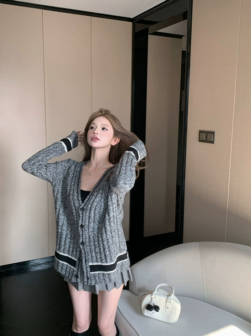| nameOriginal | Soft and waxy contrasting color design niche Korean cardigan sweater |