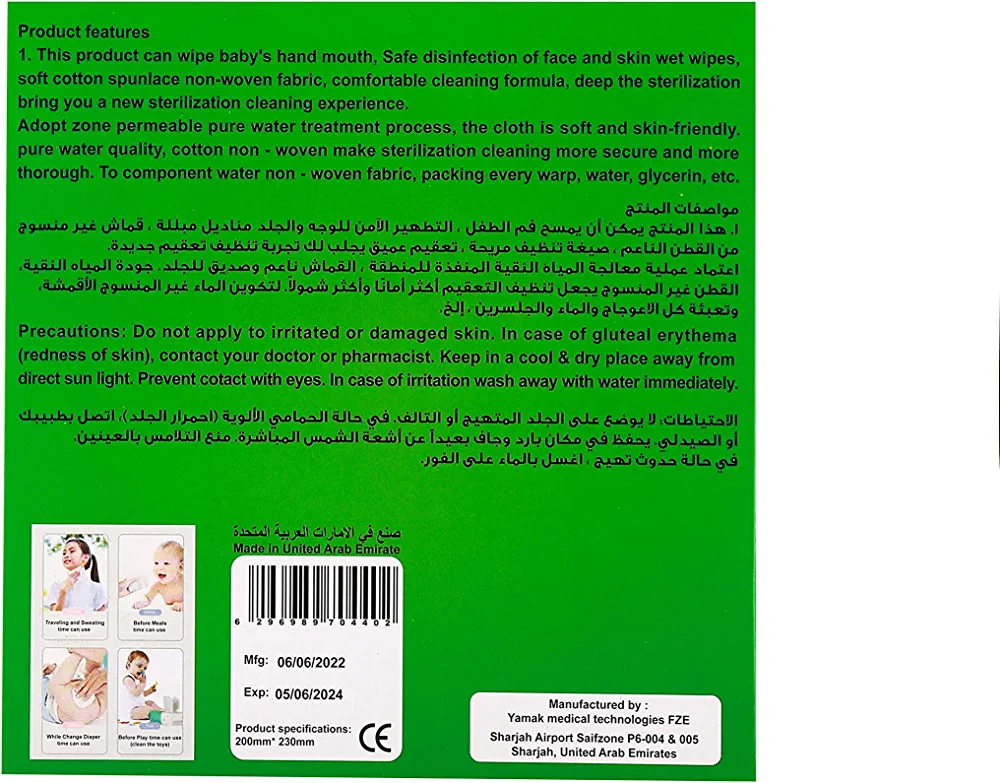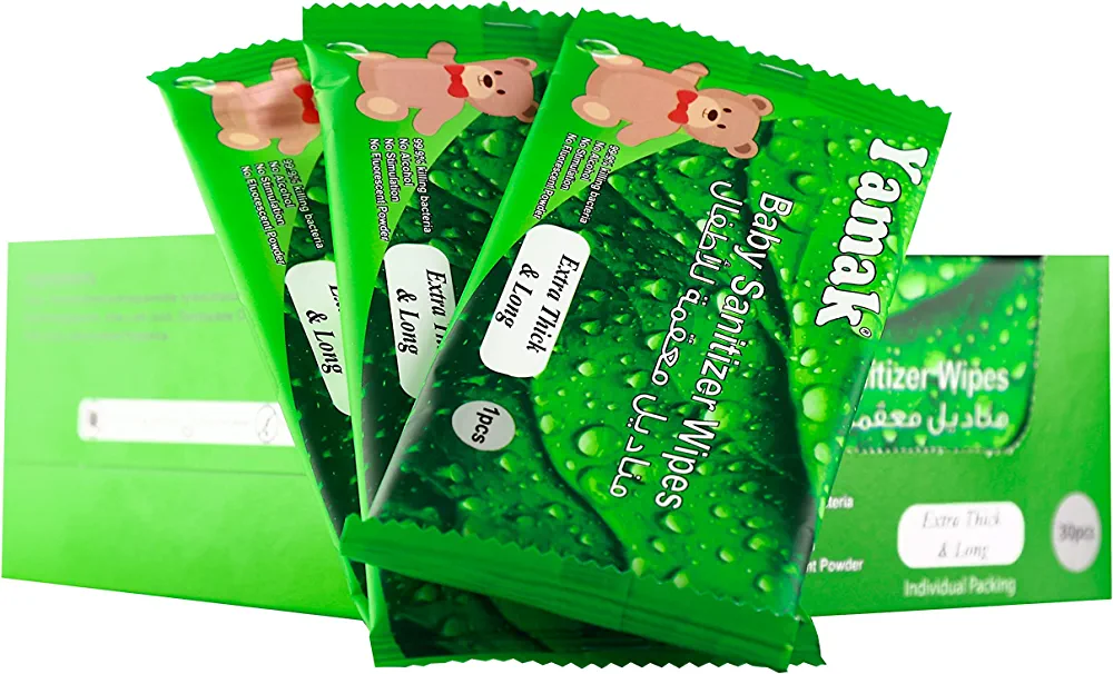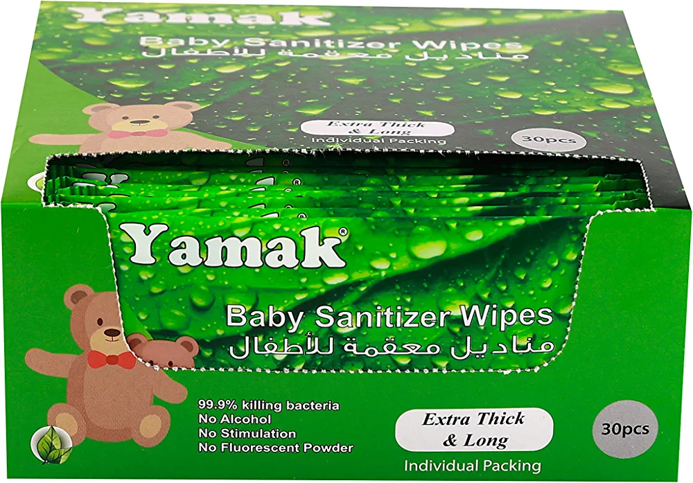 | nameOriginal | Yamak Sanitizer Wipes for Babies, 30 individually wrapped wipes, Soft Cotton Fabric Multi-purpose Wipes, Whole Body Use, 99.9% bacteria killing 30pcs |