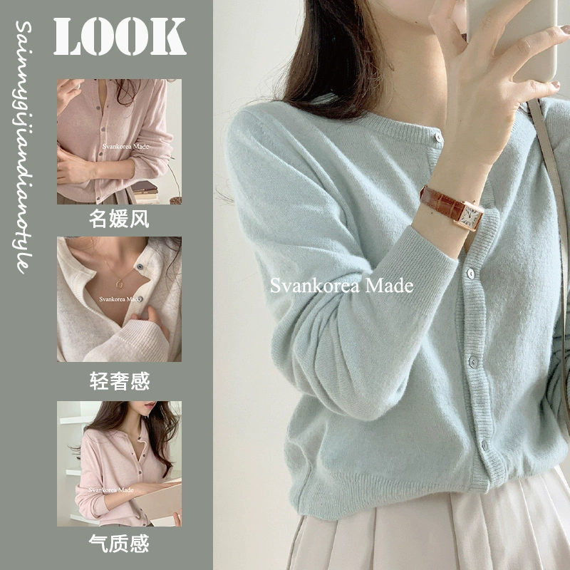 | nameOriginal | Soft Cream Blue French Layered Crew Neck Knitted Cardigan |