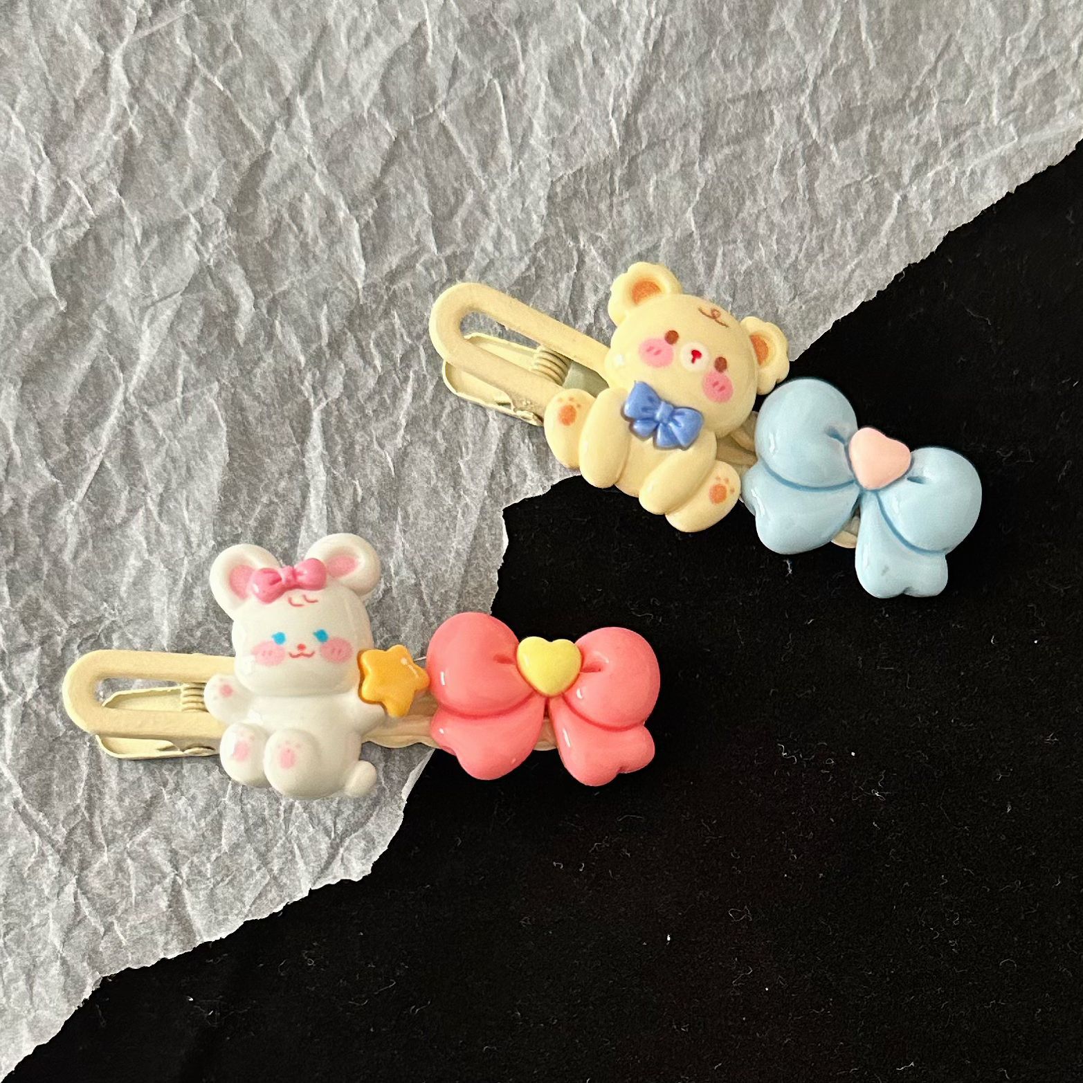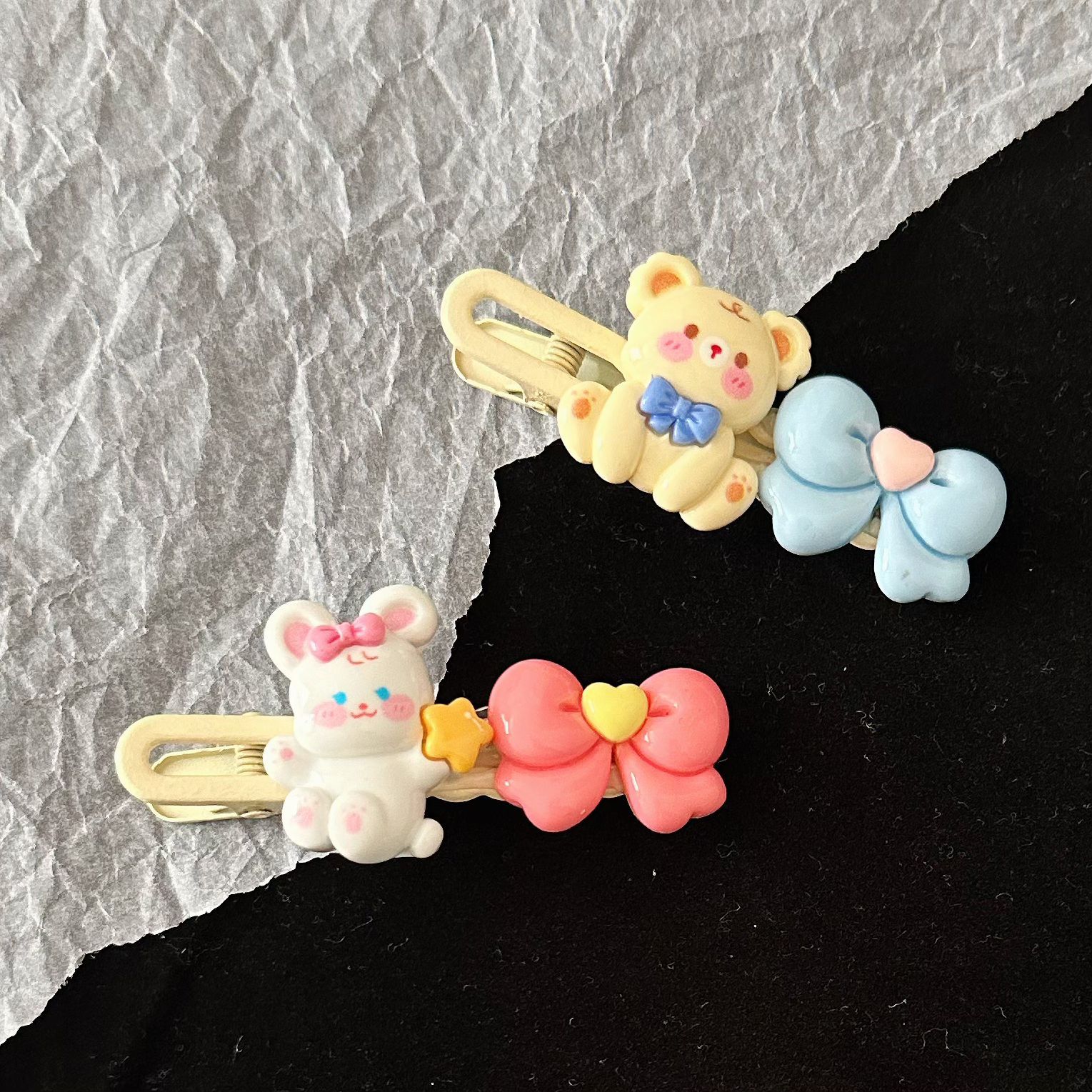 Soft cute rabbit hairpin sweet bow side bangs hairpin high beauty value girl clip jewelry hair accessories