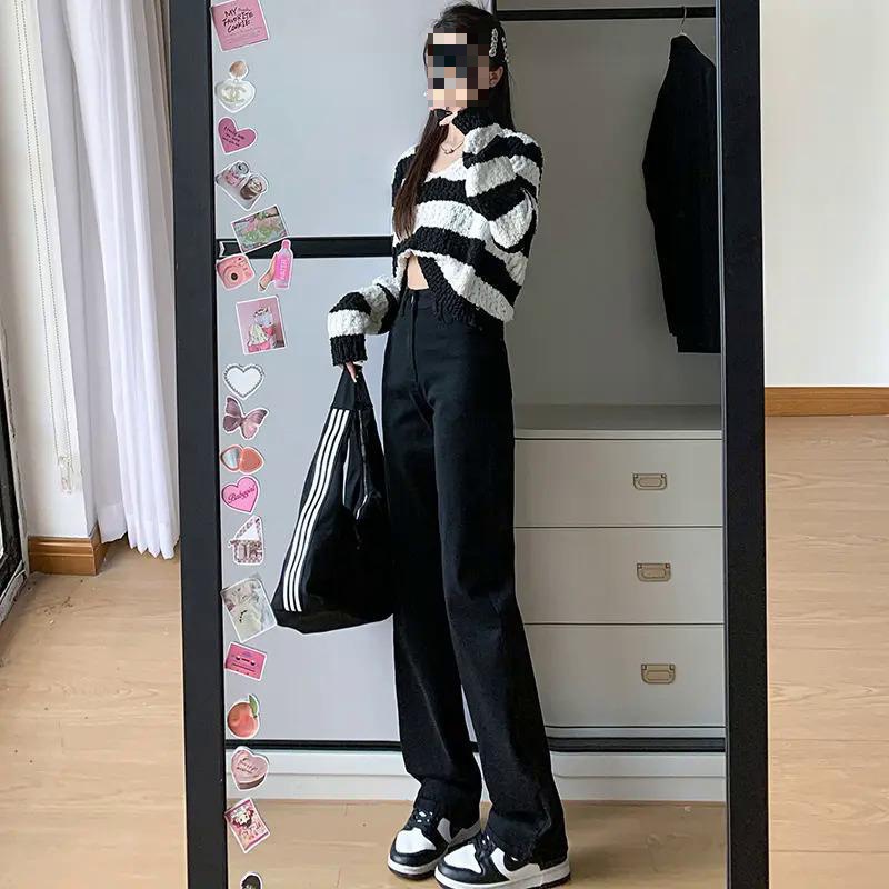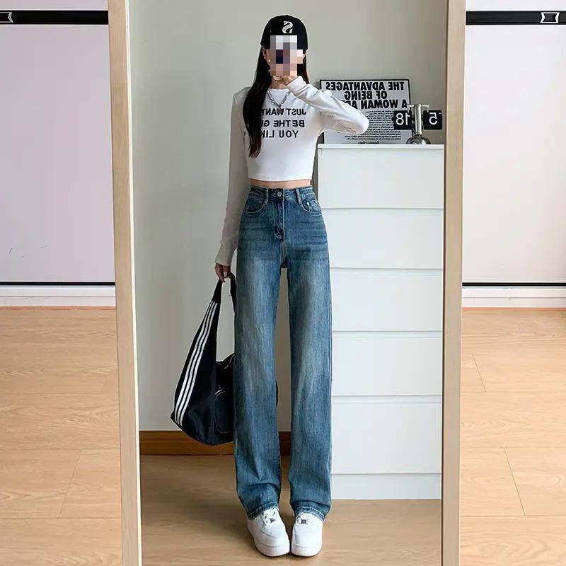 | nameOriginal | Soft Denim High Waist Four-sided Elastic Slim Slim Narrow Straight Wide Leg Pants for Women |