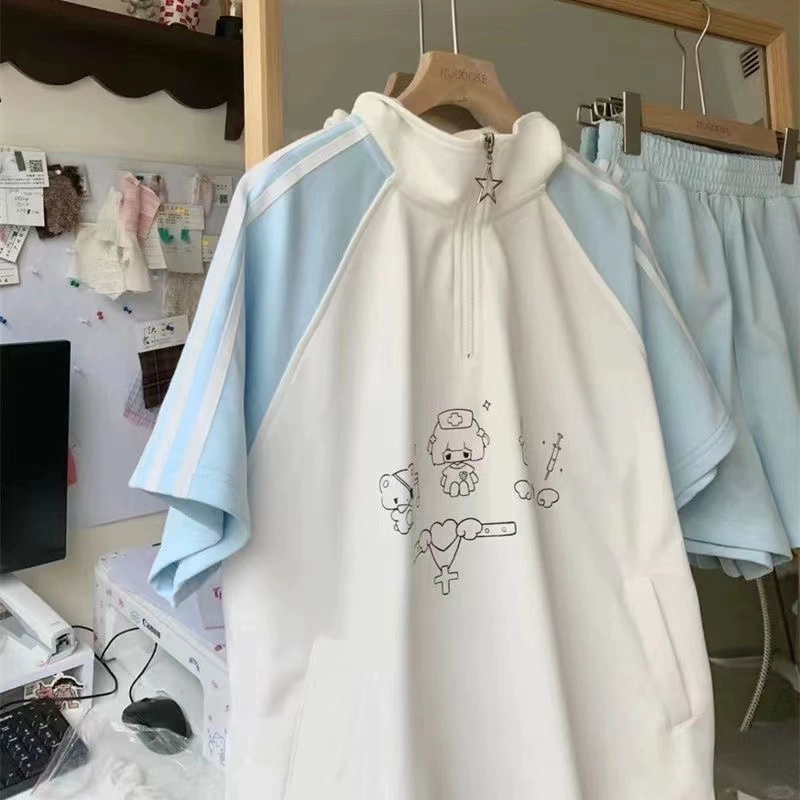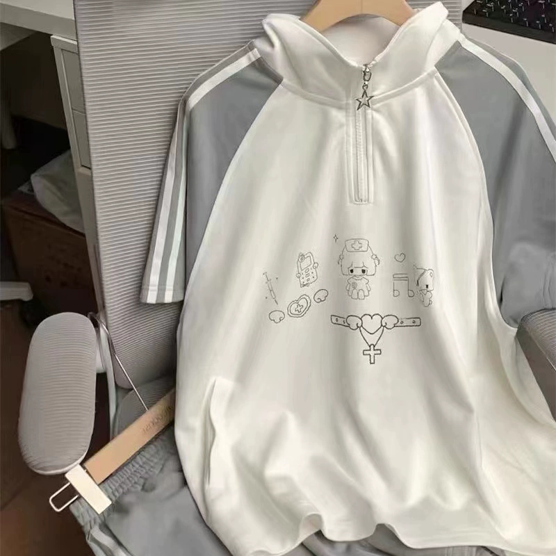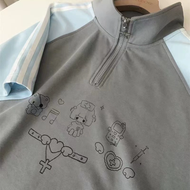 | nameOriginal | Soft girl subculture contrasting color zipper top short-sleeved T-shirt |