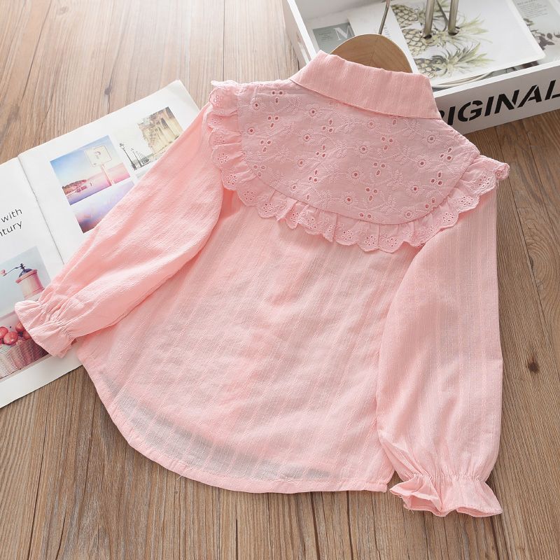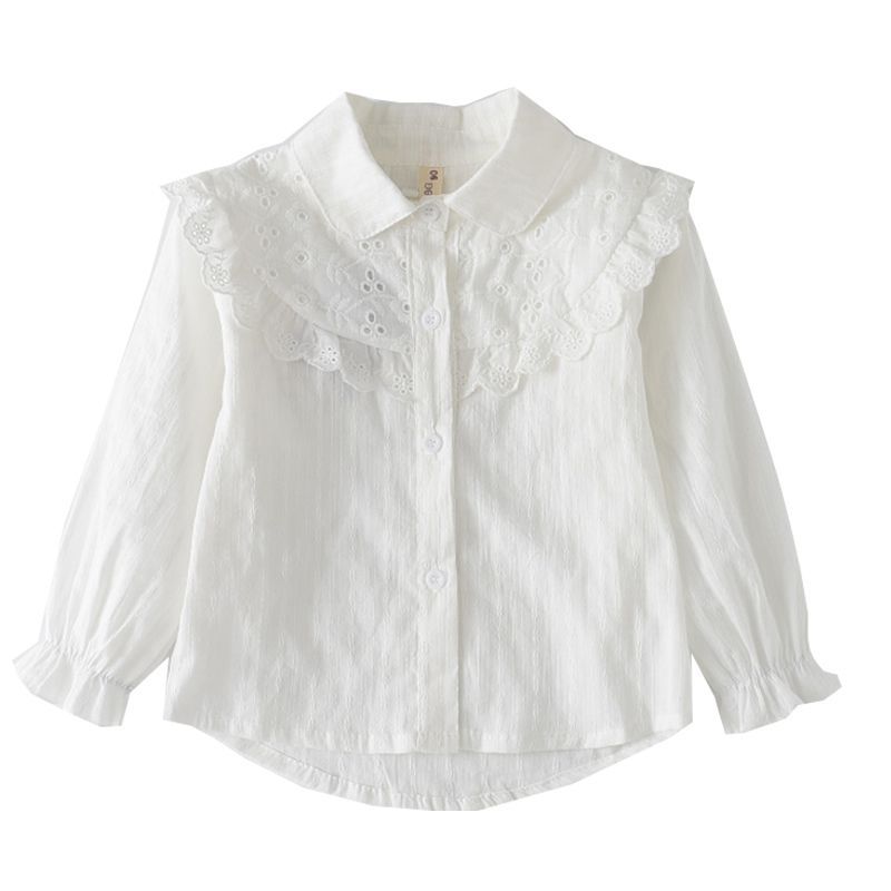 Soft Girls' Shirt Children's Lace Lapel Shirt Large Children's Base Shirt White Top 2024 Spring Clothes