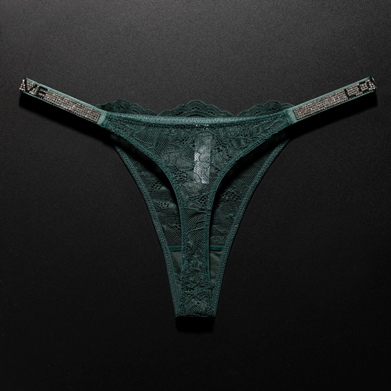 | nameOriginal | Soft lace thong women's European and American sexy rhinestone temptation hot T-pants breathable seamless underwear pure desire dark green |