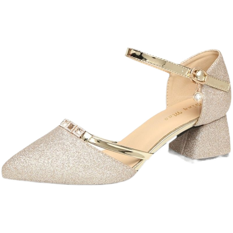 | nameOriginal | Soft Leather Coarse Heel Sandals Women's 2024 Summer New Baotou One-character Buckle with Mid-heel Pointed Cheongsam Single Cross-border |
