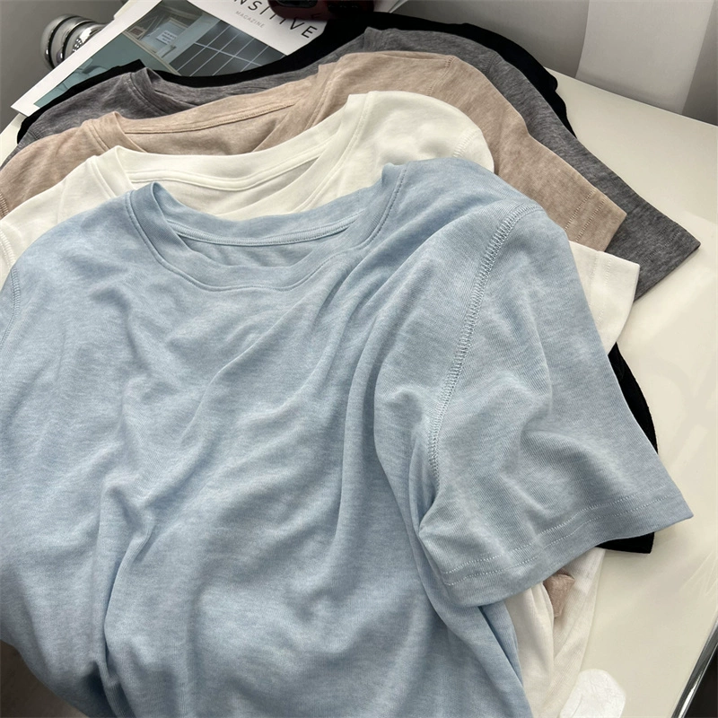 | nameOriginal | Soft Lyocell thin ice silk short-sleeved T-shirt for women summer loose solid color round neck pullover knitted bottoming top |