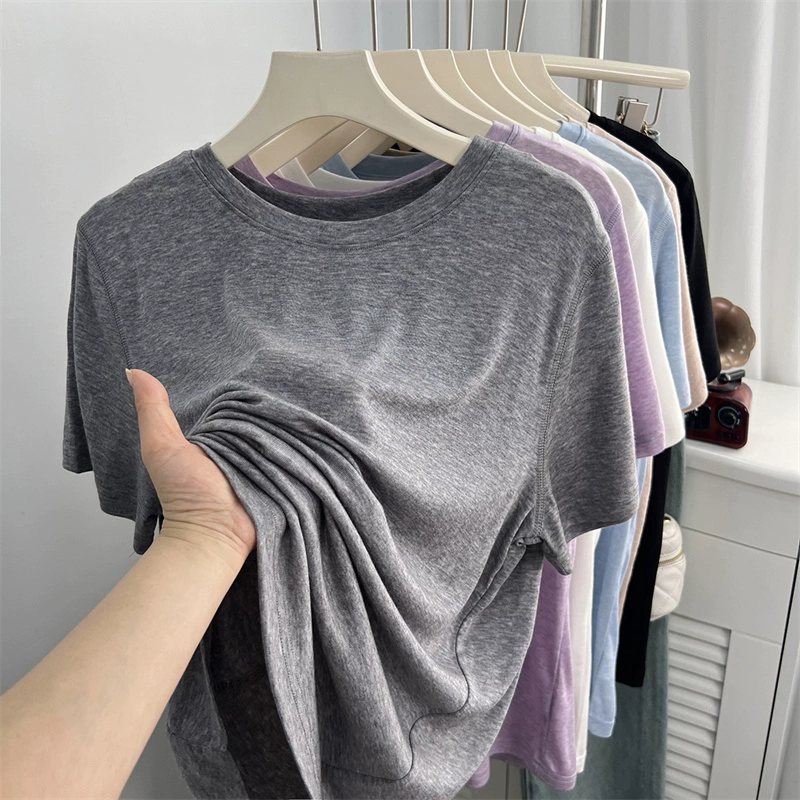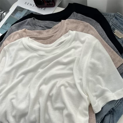| nameOriginal | Soft Lyocell thin ice silk short-sleeved T-shirt for women summer loose solid color round neck pullover knitted bottoming top |
