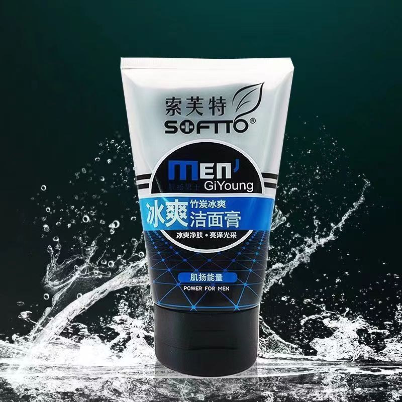 Soft Men's Refreshing Oil Control Facial Cleanser 100g Frosted Ice Cool Facial Cleanser Acne Removal, Blackhead Removal, Moisturizing and Hydrating