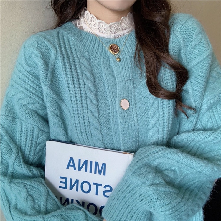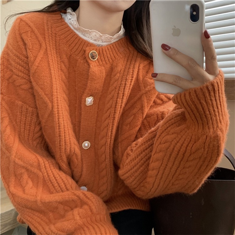 Soft Nuo knitted cardigan for women 2023 autumn new sweater coat loose Korean style round neck lazy style outer top