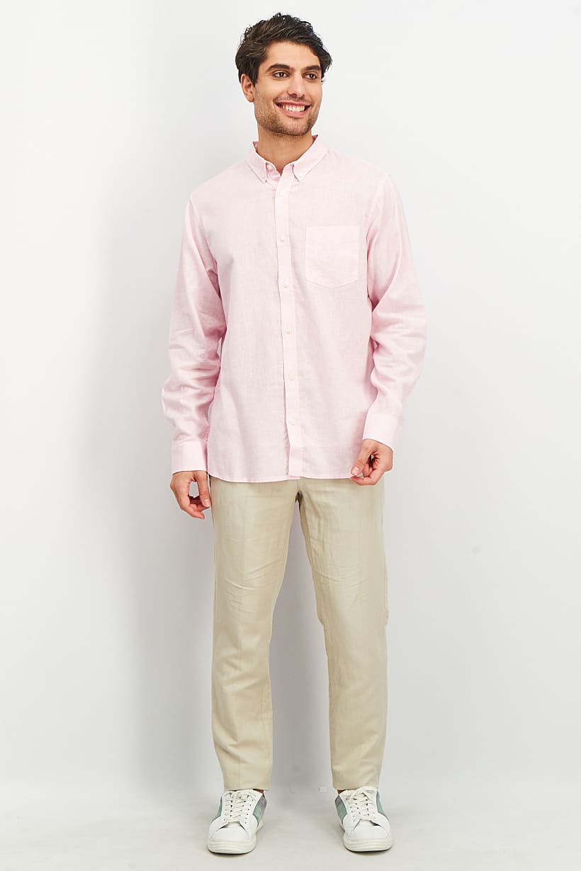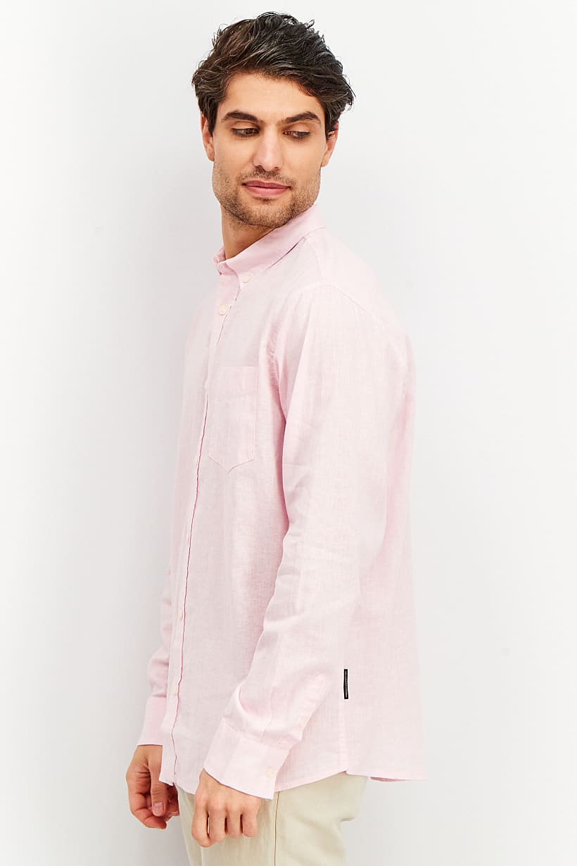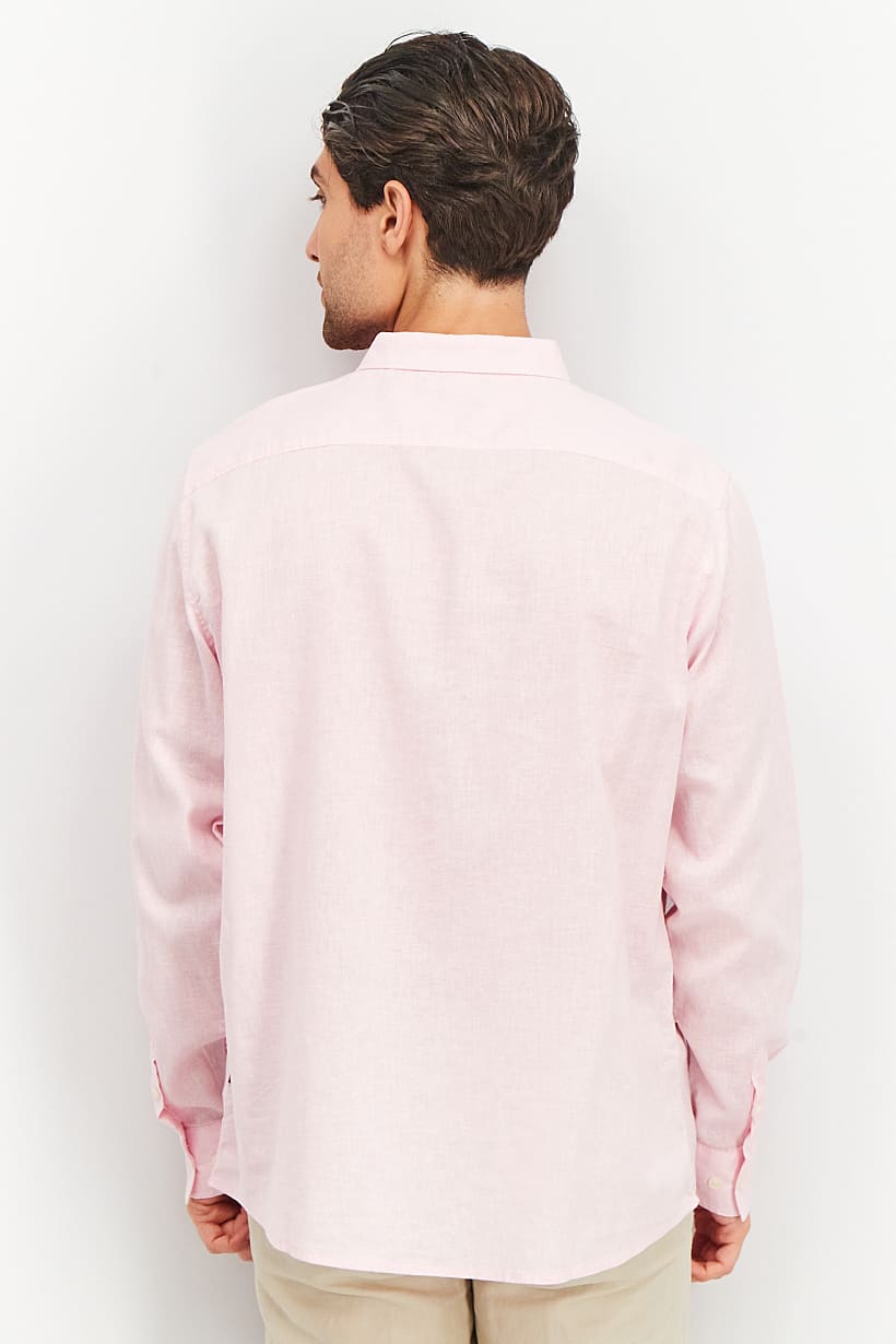 Care : Machine washable, Fit : Regular fit, Size shown : International, Sleeve Length : Long Sleeve, Types of Hem : Curved hem, Disclaimer : Product color may slightly vary due to photographic lighting sources or your monitor settings., Fabrics : 55% Linen, 45% Cotton, Occasion : Casual, Pattern & Print : Plain/Solid, Types of Closures : Button, Color Family : Pink, Types of Neckline & Collar : Button down collar,