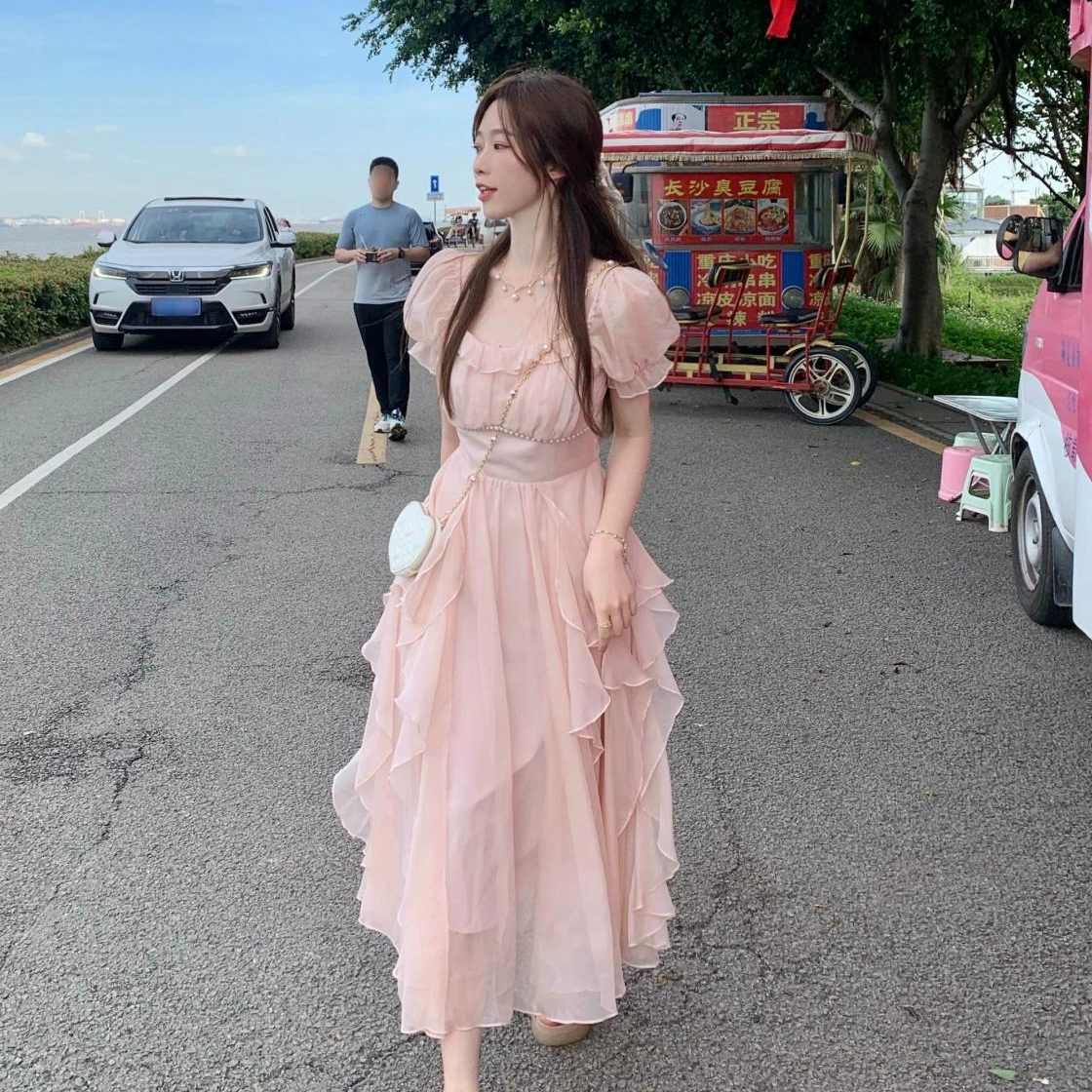 Soft pink dopamine chic beautiful long dress
