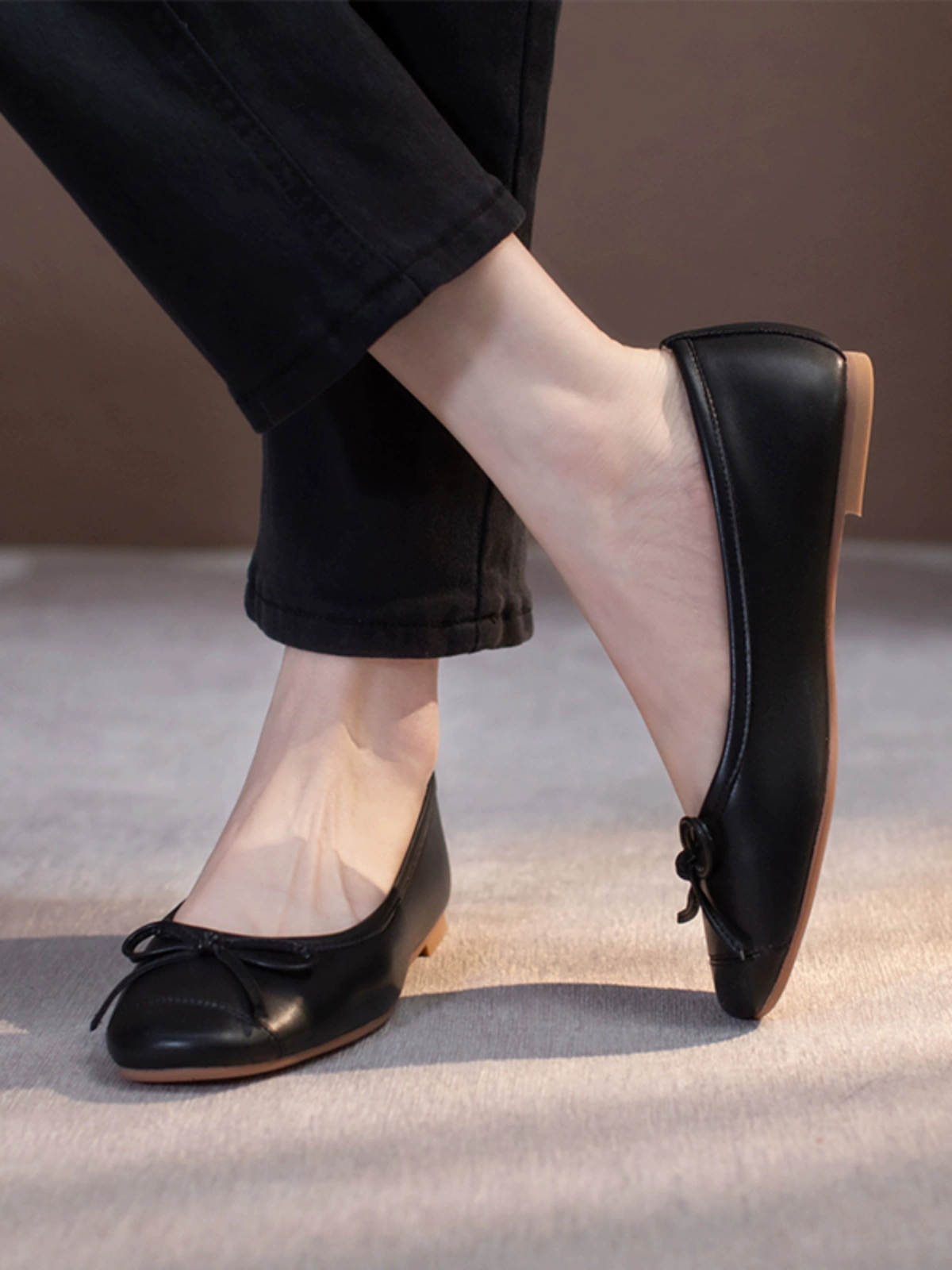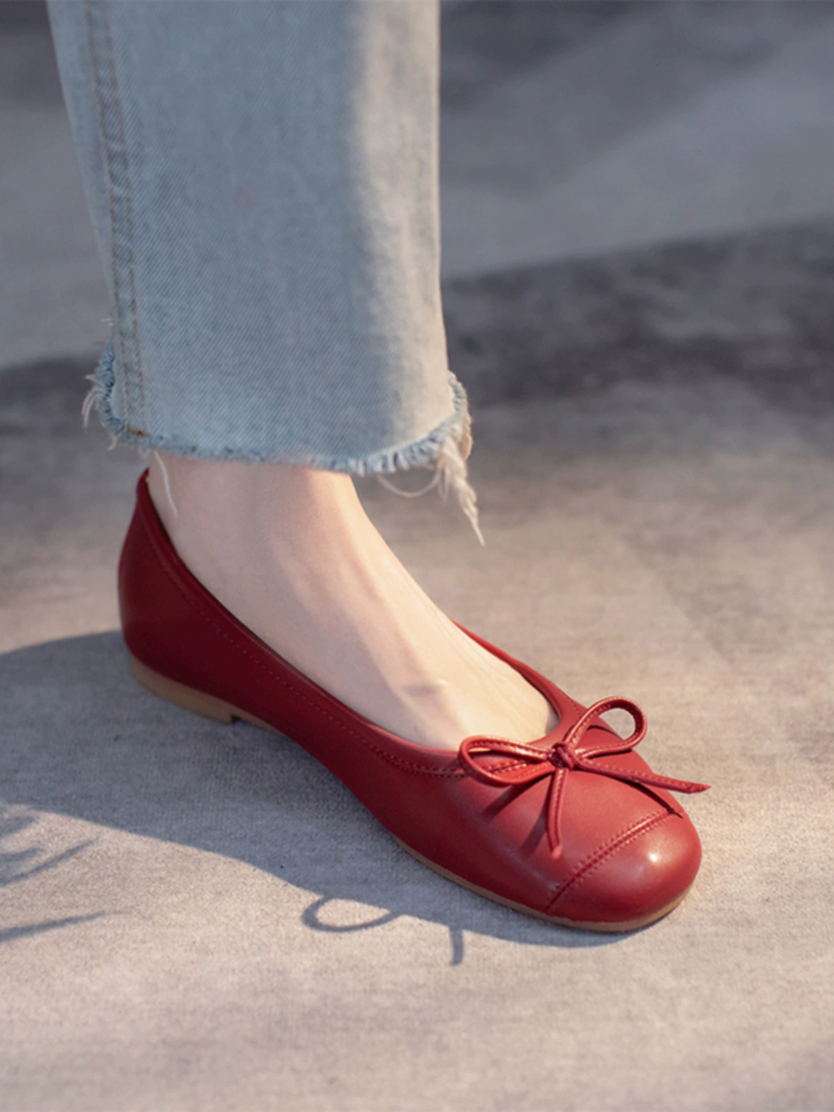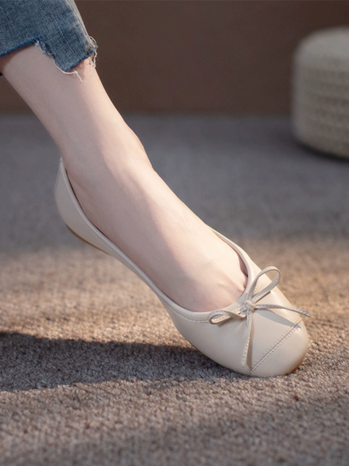 | nameOriginal | Soft sheepskin granny shoes women's flat genuine leather bow ballet shoes retro soft sole bean shoes summer shallow mouth shoes |