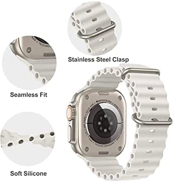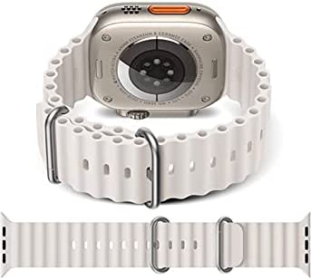 Introducing the Ocean Band Compatible for Apple Watch Ultra Band, the perfect replacement band for your i Watch Ultra and Series 8/7/6/5/4/3/2/1. Made from soft silicone material, this band is comfortable to wear all day long. The band is available in a sleek white color that will complement any outfit. With a size range of 49mm, 45mm, 44mm, and 42mm, this band is suitable for a wide range of wrist sizes. Upgrade your Apple Watch with the Ocean Band Compatible for Apple Watch Ultra Band and enjoy a comfortable and stylish accessory for your daily wear.