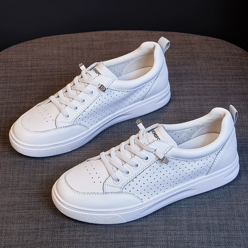 Soft-soled first-layer cowhide popular autumn breathable white shoes