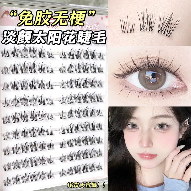 Soft stemless sunflower false eyelashes glue-free natural simulation lazy self-adhesive single cluster eyelashes segmented students