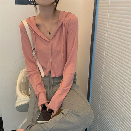 | nameOriginal | Soft Waxy Hooded Long-sleeved Cardigan Short Coat Women's New Autumn Lazy Style Slim-fit Short Base Shirt Top |
