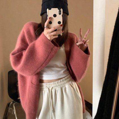 | nameOriginal | Soft Waxy Lazy Style Knitted Sweater Coat Women's Cardigan New All-match Solid Color Loose Elegant Gentle Chic Top |