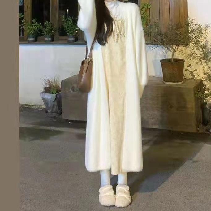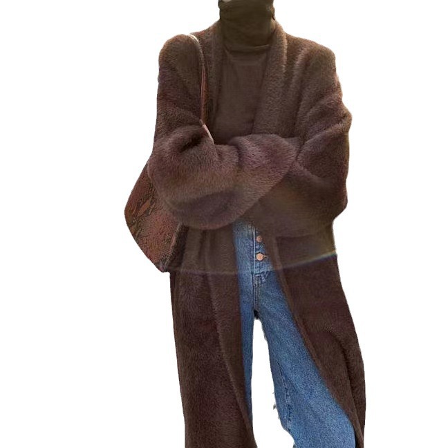 | nameOriginal | Soft Waxy Wool Coat Women's Autumn and Winter Thickened Pure Want to Wear Long Imitation Mink Velvet Knitted Cardigan Lazy Top Trendy |
