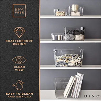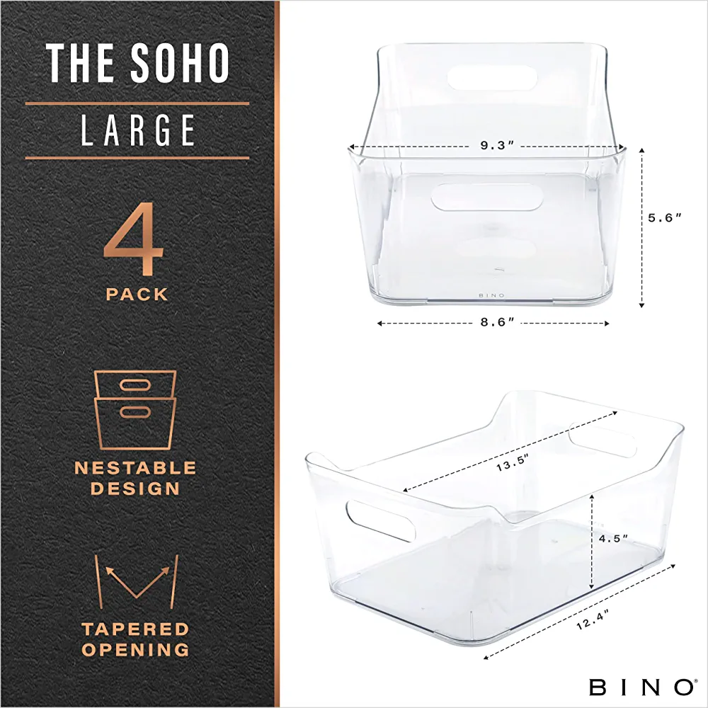 | nameOriginal | Bino, Plastic Storage Bins, Large – 4 Pack, The SOHO Collection, Multi-Use Organizer Bins, Built-in Handle, BPA-Free, Pantry Organization, Home Organization, Fridge Organizer, Freezer Org |