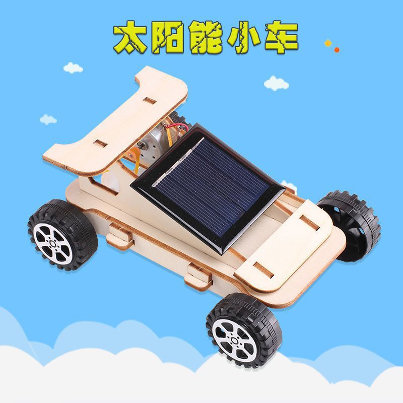 Solar car primary school students science experiment toy material small production small equipment wooden car