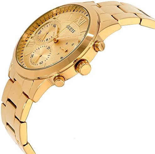 Solar-powered stainless steel strap women’s watch with multiple dials by Guess.