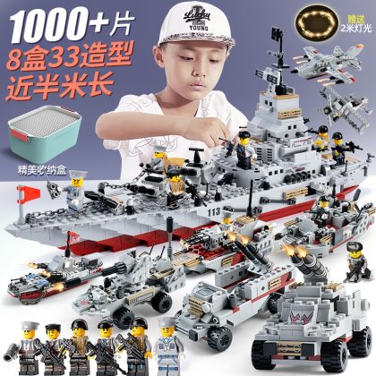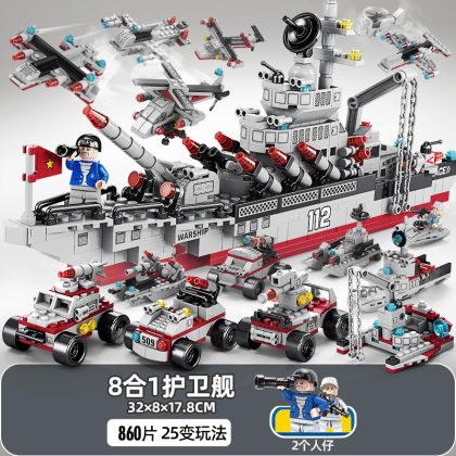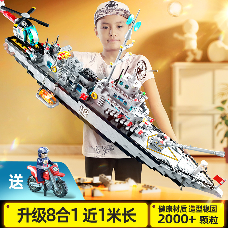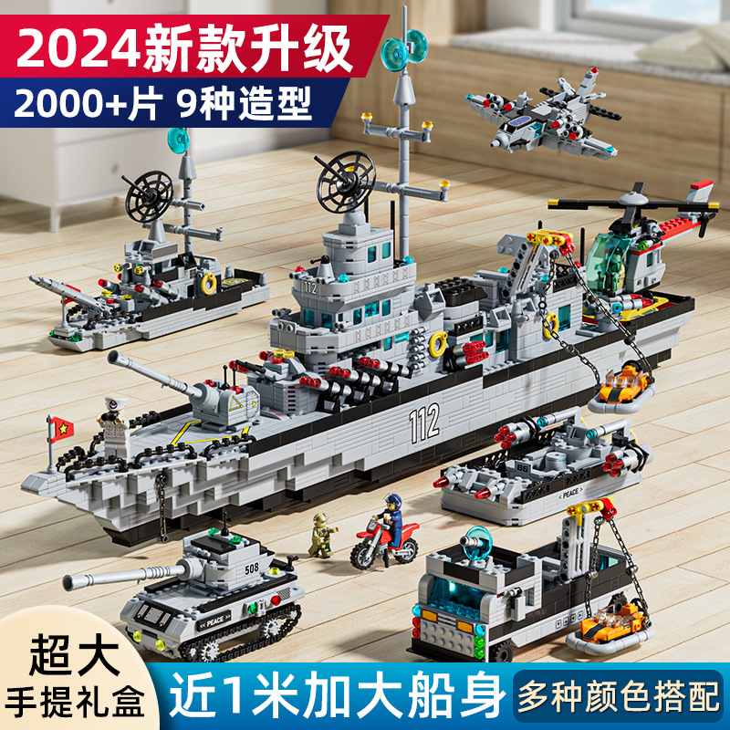Solder Fu Building Blocks Benefit Intelligence Assembled Toys Aircraft Carrier Destroyer Model Boys Children Gift Puzzle 2024