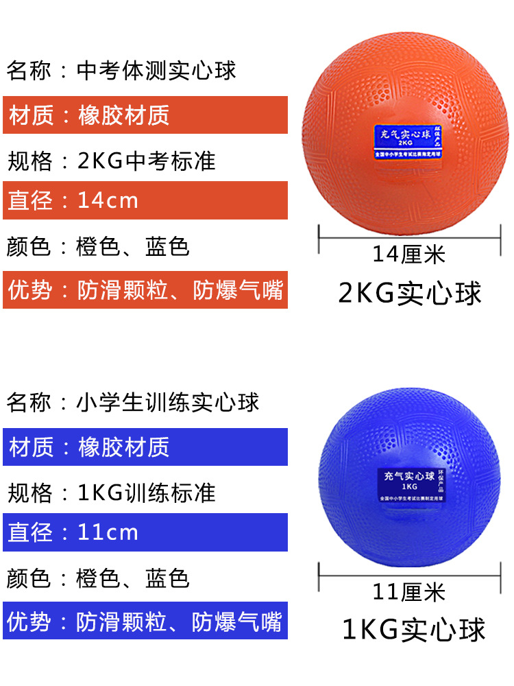 Solid ball test standard 2kg inflatable training middle school students sports men's and women's competition rubber shot put 1kg