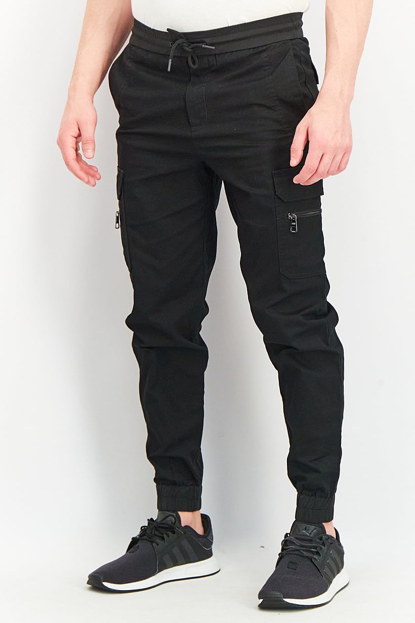 | nameOriginal | Men Regular Fit Solid Cargo Pants, Pure Black |