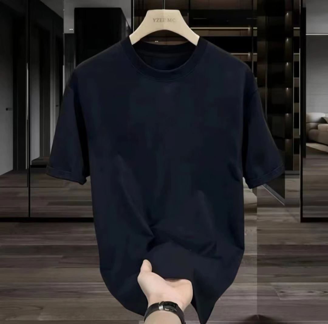 | nameOriginal | Solid black men's short-sleeved T-shirt underneath the heavy body pantyhose |