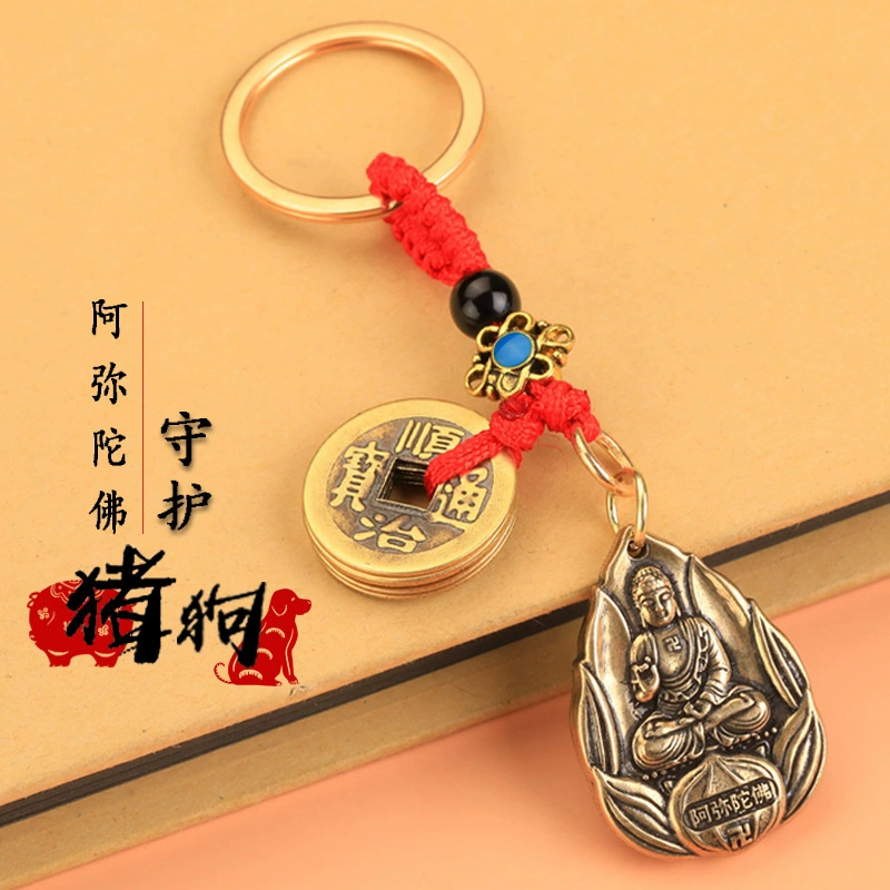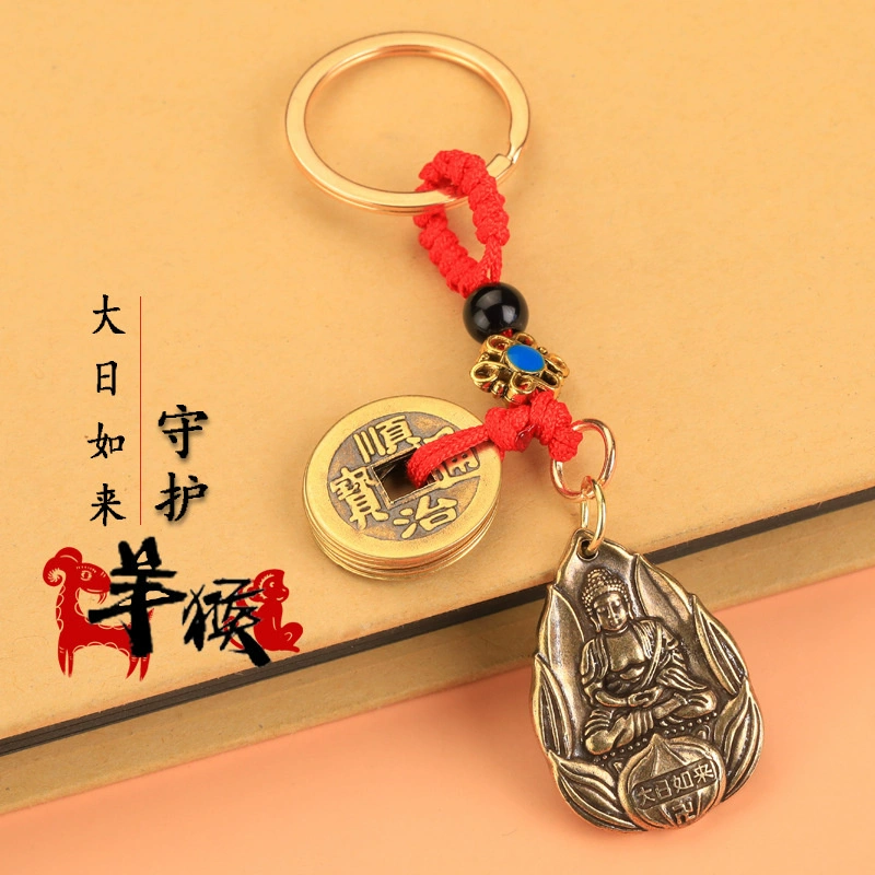 | nameOriginal | Solid brass eight patron saints, twelve zodiac signs, safe car keychain pendant, five emperors' money gift for men and women |
