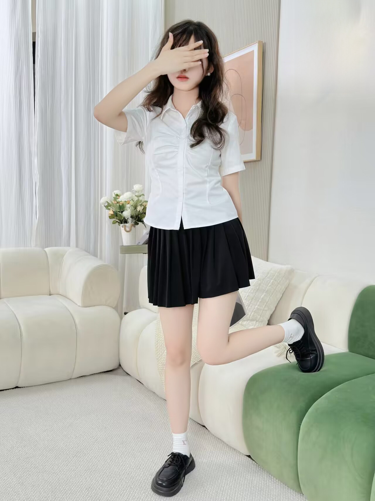 | nameOriginal | Solid color 38CM elastic belt pleated JK bust skirt Joker slim high waist skirt foreign trade AliExpress in stock |