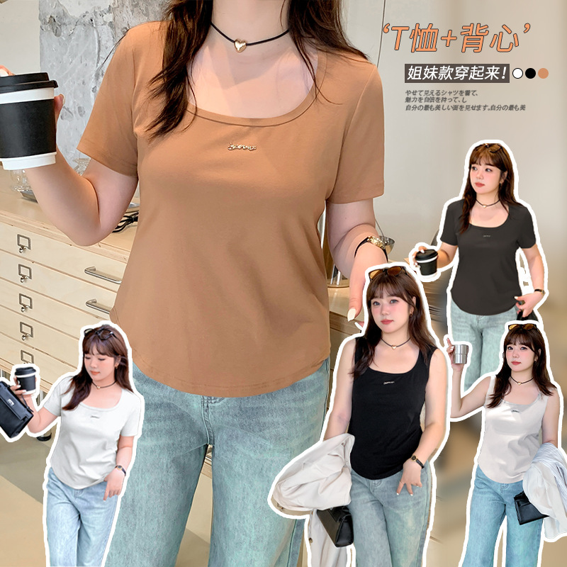 | nameOriginal | Solid color all-match U-neck short-sleeved T-shirt plus size women's clothing 2024 spring new slimming underwear top 120033 |