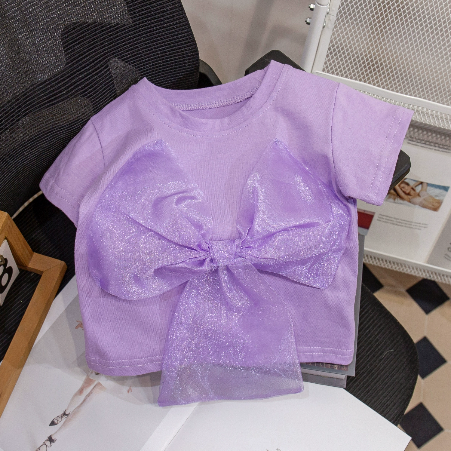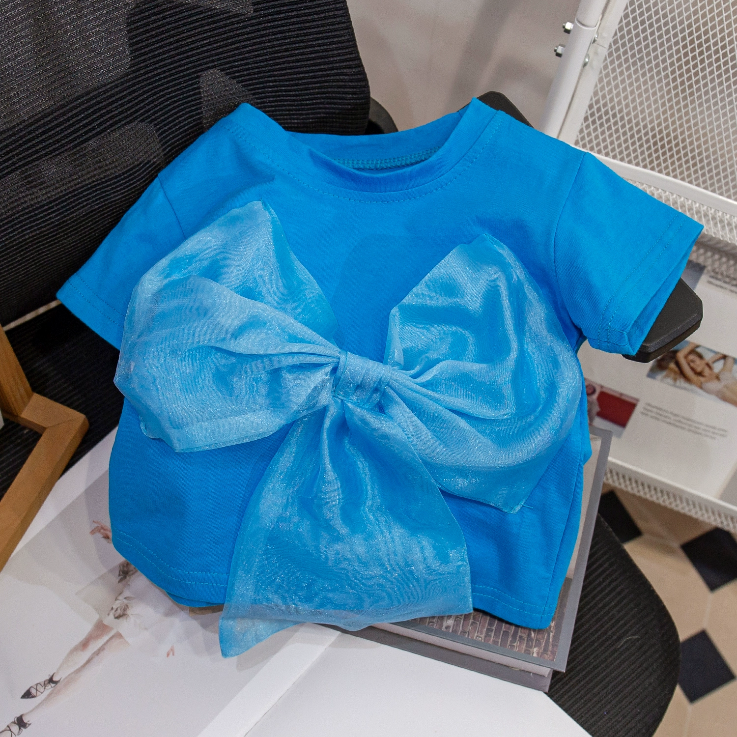 | nameOriginal | Solid color bow short-sleeved sweet round neck children's T-shirt |