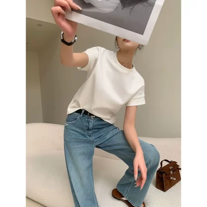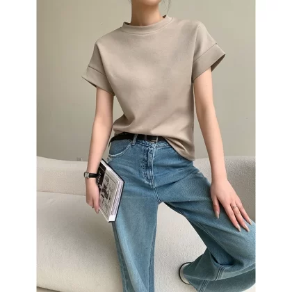 Solid color casual basic top short-sleeved T-shirt