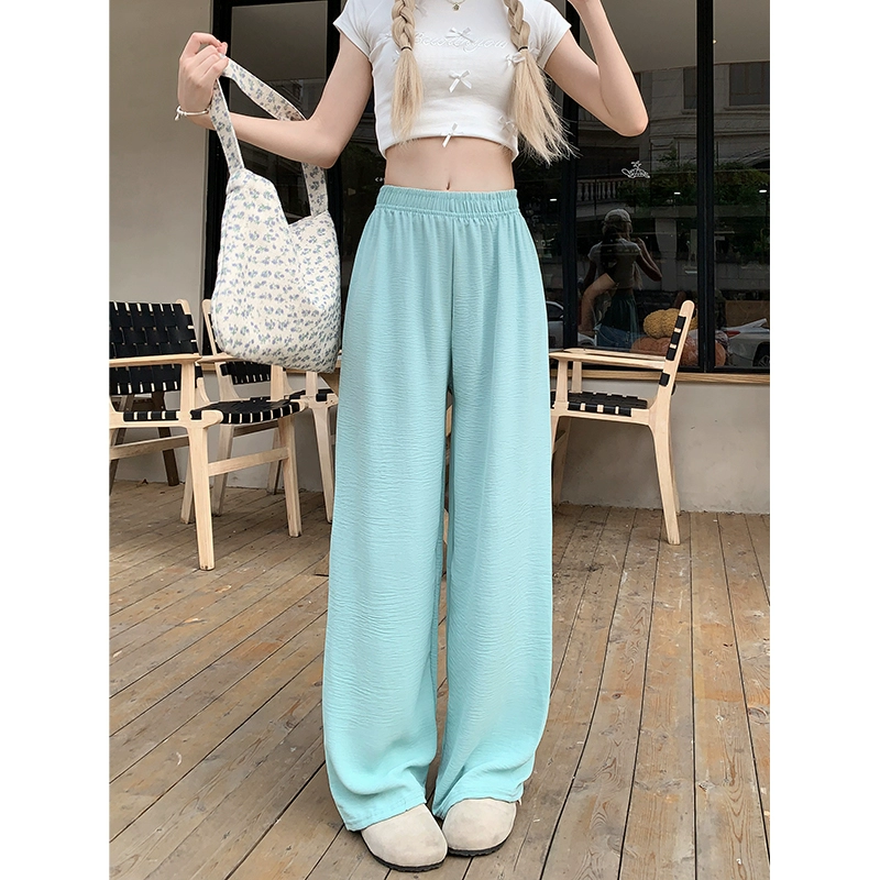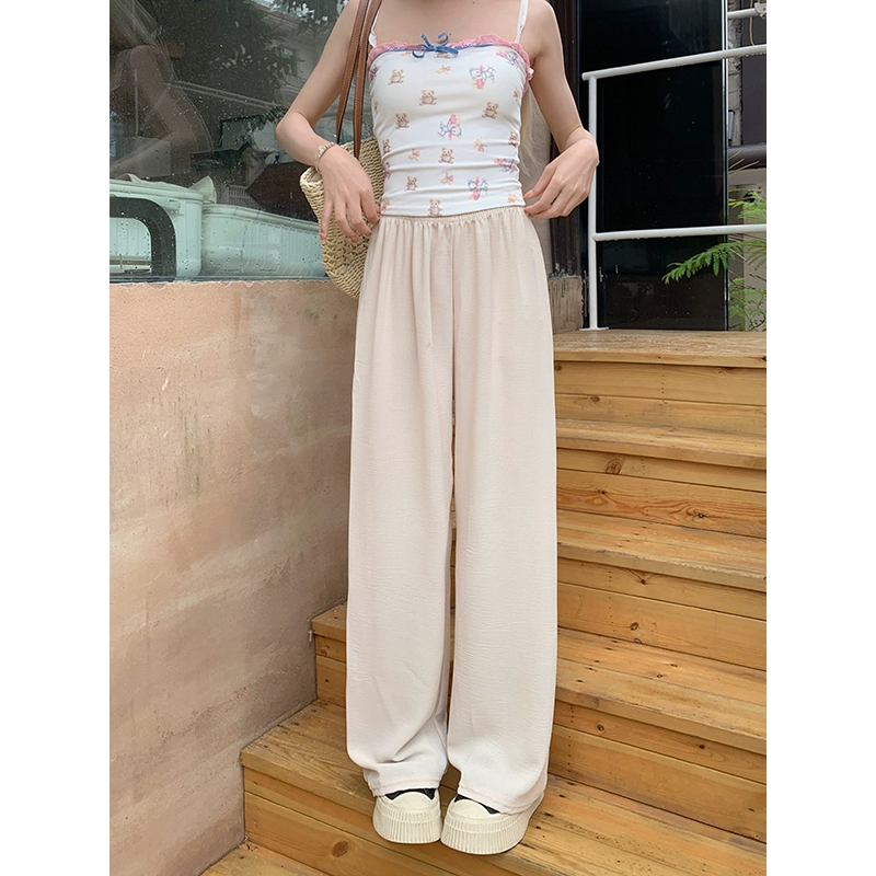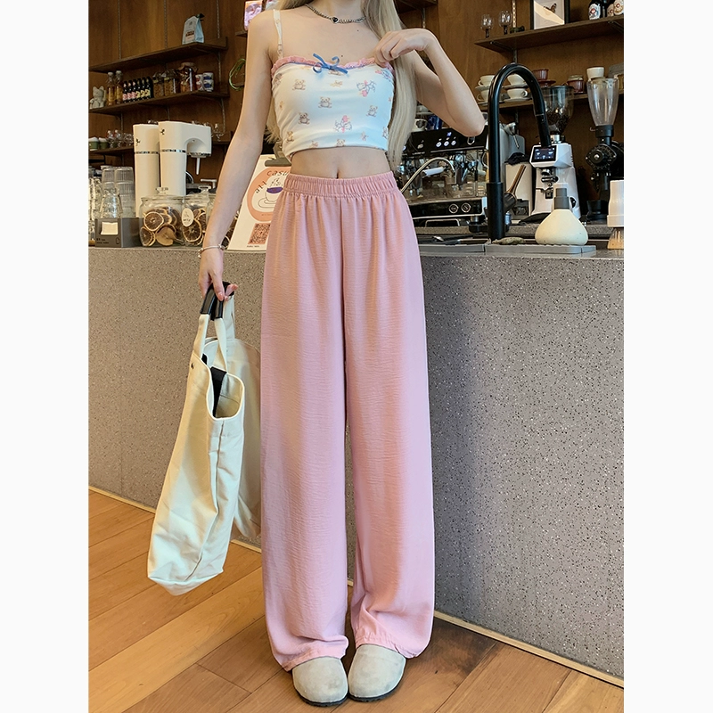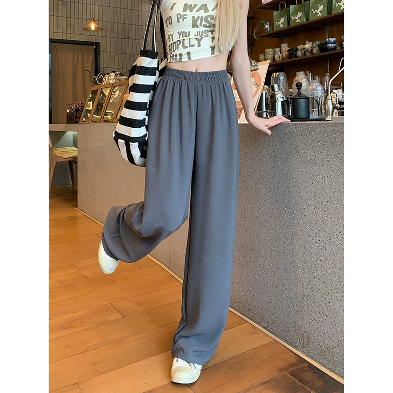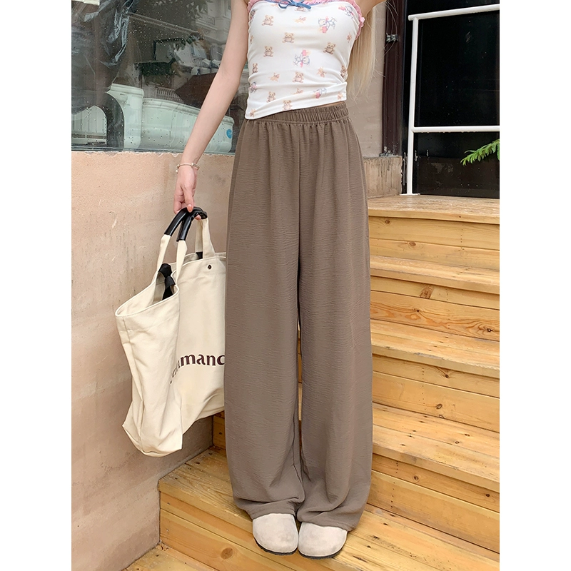 Solid color elastic waist versatile Yamamoto straight leg walking pants
